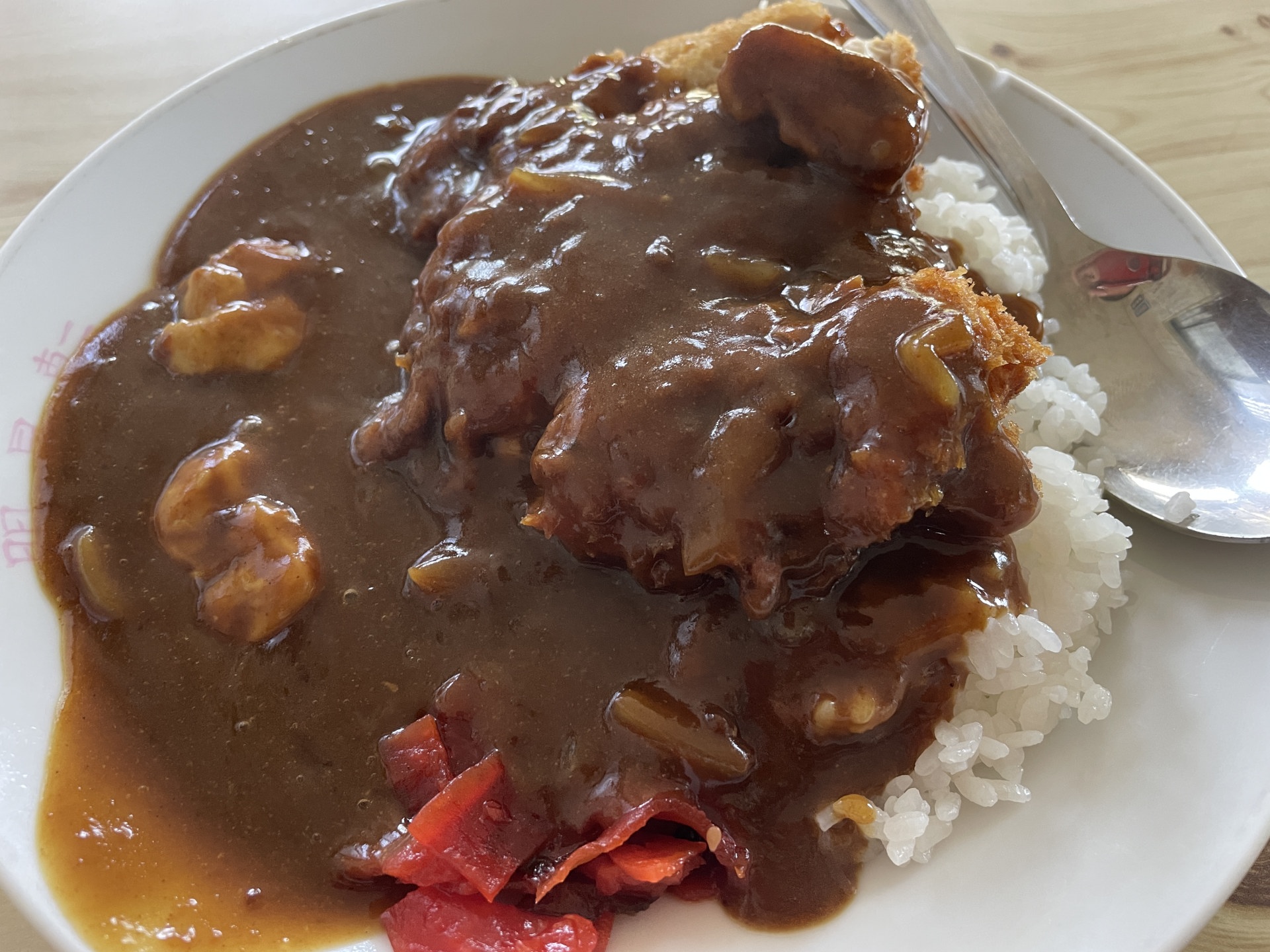 [写真:作業前の腹ごしらえ(明星軒のチキンカツカレー)