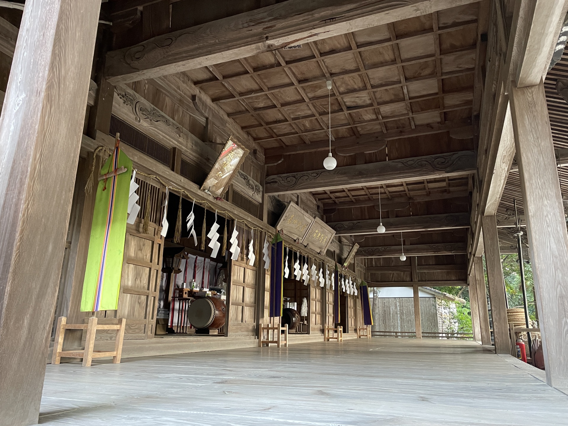 神職手帳を開いていた私に、神職さんが「なんで、それ持ってるんですか?」ときかれたので、素性をバラすと、そこからさらに丁寧に対応してくれて、なんと御神輿庫にも入れてくれて、いろいろと説明してくださった。