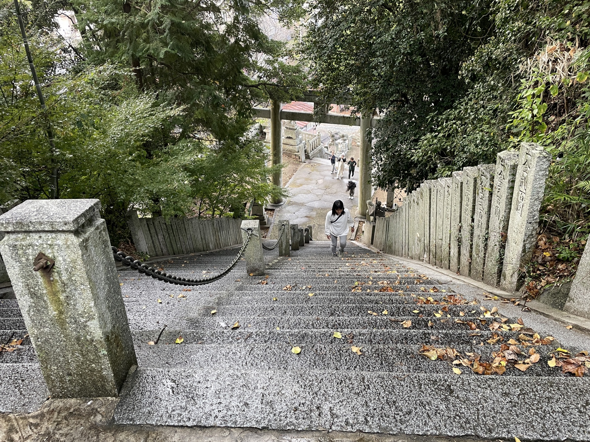 駐車場から長く続く石段を見た時はちょっとおののいたが、みんなでがんばって登拝。