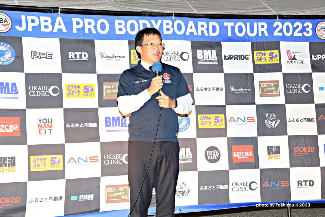 さらに、夕方はマルキポイントで行われていたボディーボードツアーの最終ラウンドの、1日目の表彰式のプレゼンターとして、ウェルネスポーツ鴨川を代表して出席させていただいた。
