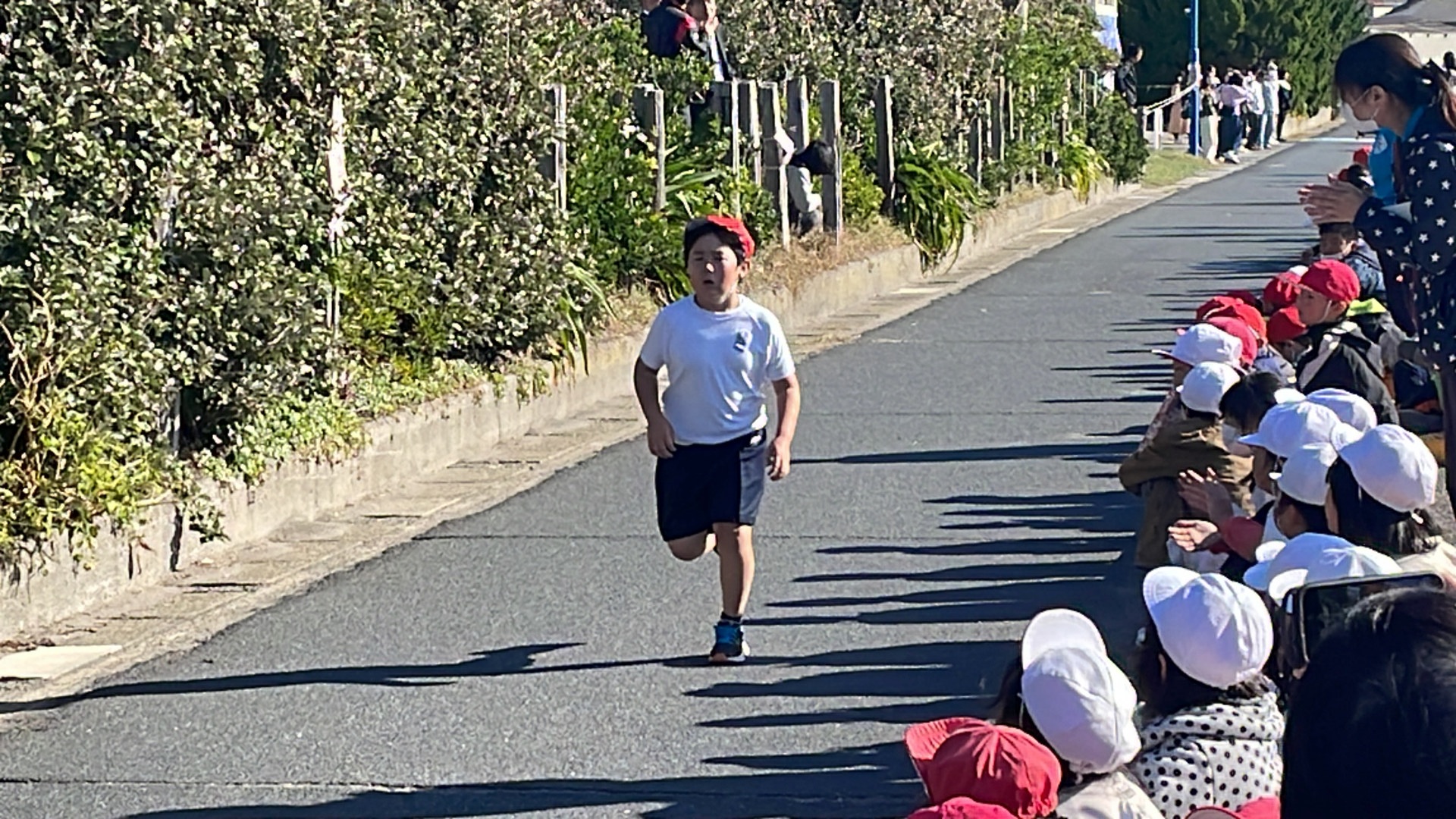 穏やかな晴天。ポカポカ暖かい天気の下、天津小湊小学校のマラソン大会は行われた。