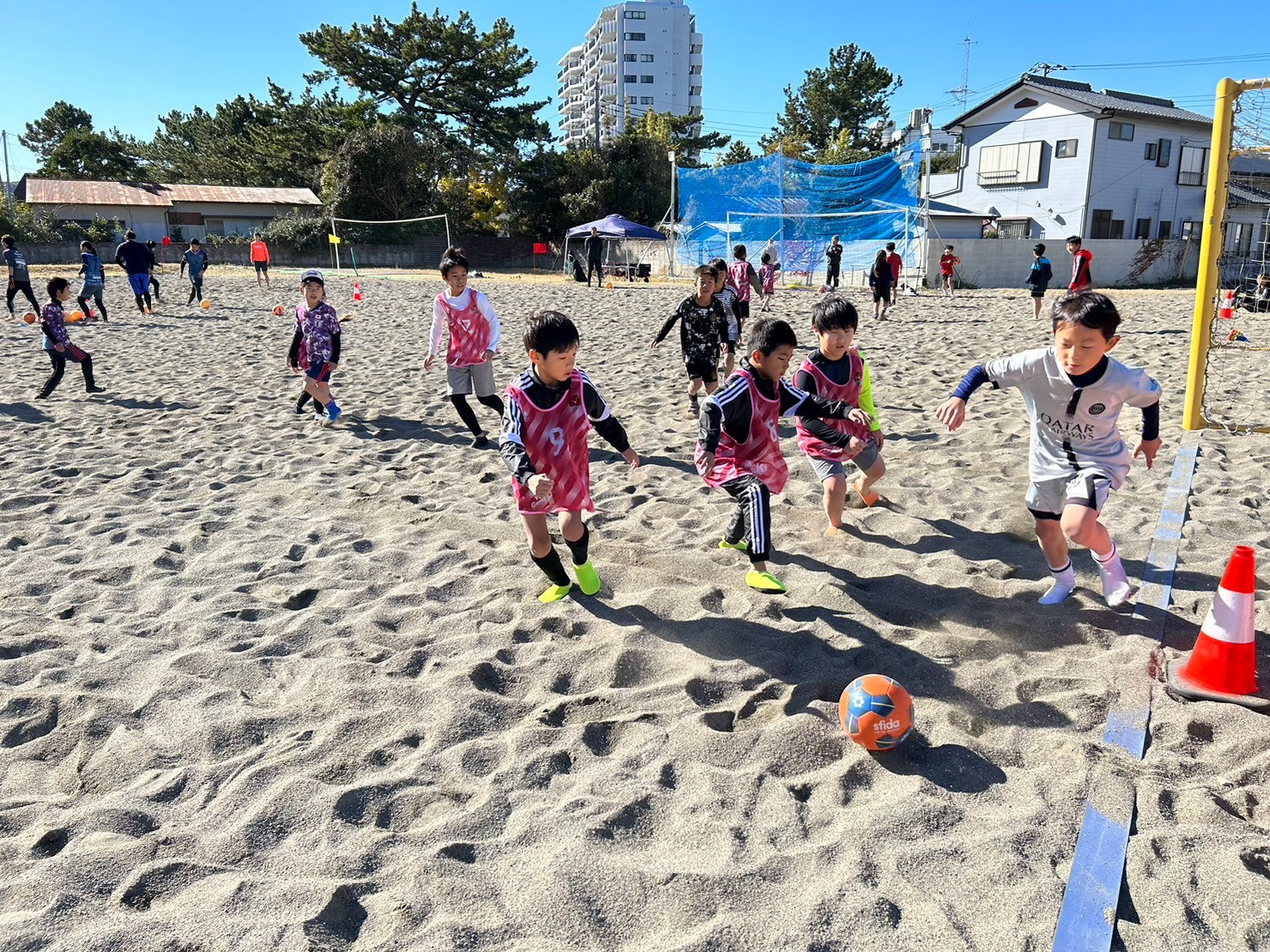 青空の広がる中、今日は鴨川令徳ビーチコートにて、丸一日、鴨川市では初開催となるJFAビーチサッカー地域巡回クリニックを行った。