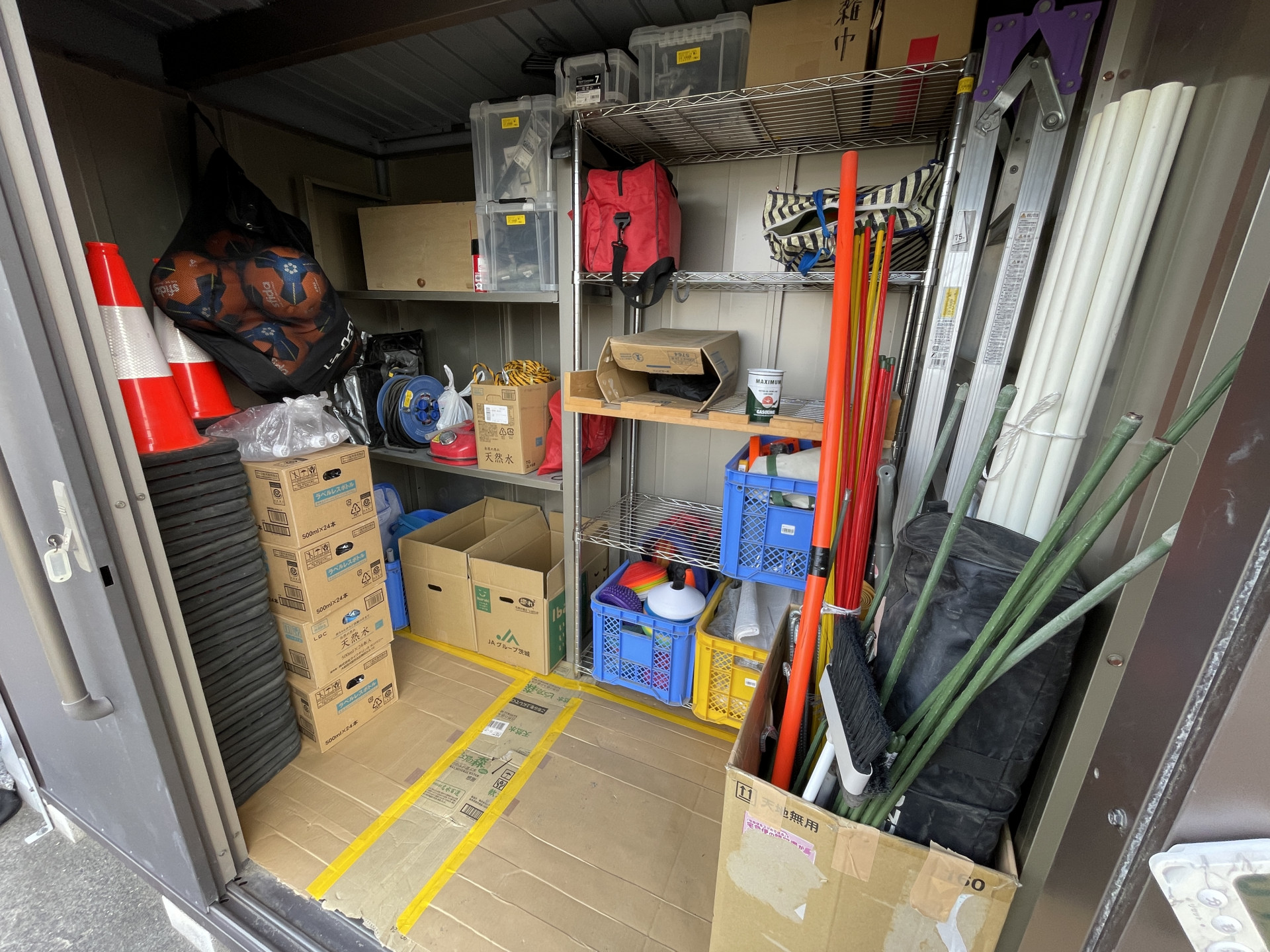 1時間半近くかけて、お借りしている柔剣道場の部屋や、コート脇の物置を整理整頓する。