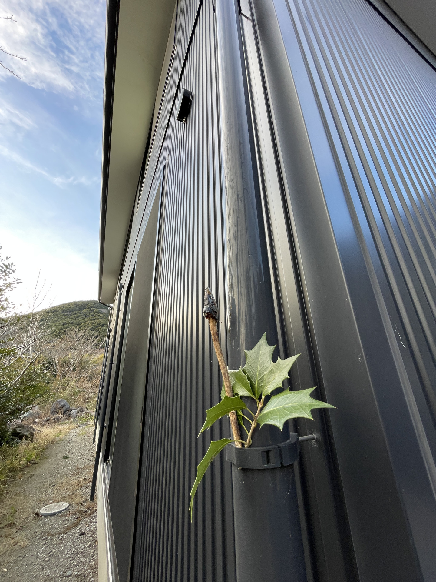 我が家では、柊と鰯の頭を乾燥させた豆の茎に刺して、家の角に刺していく。
