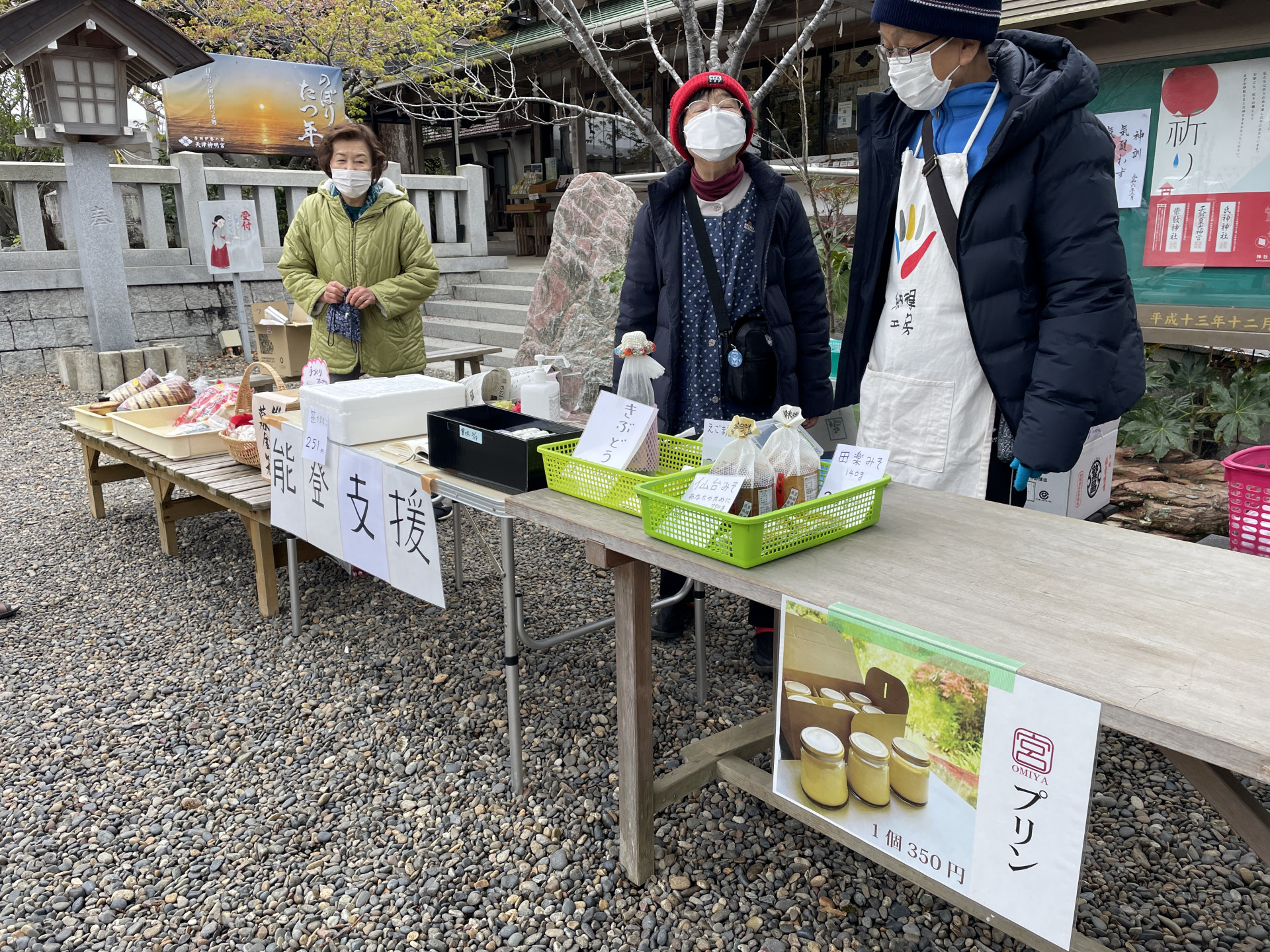 朝7時の朔旦祭を終えると、境内にはお店が並んで「おついたち市」