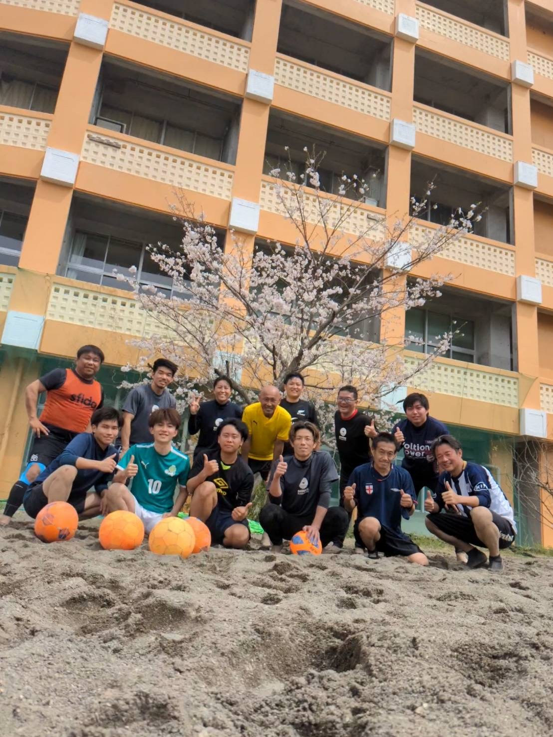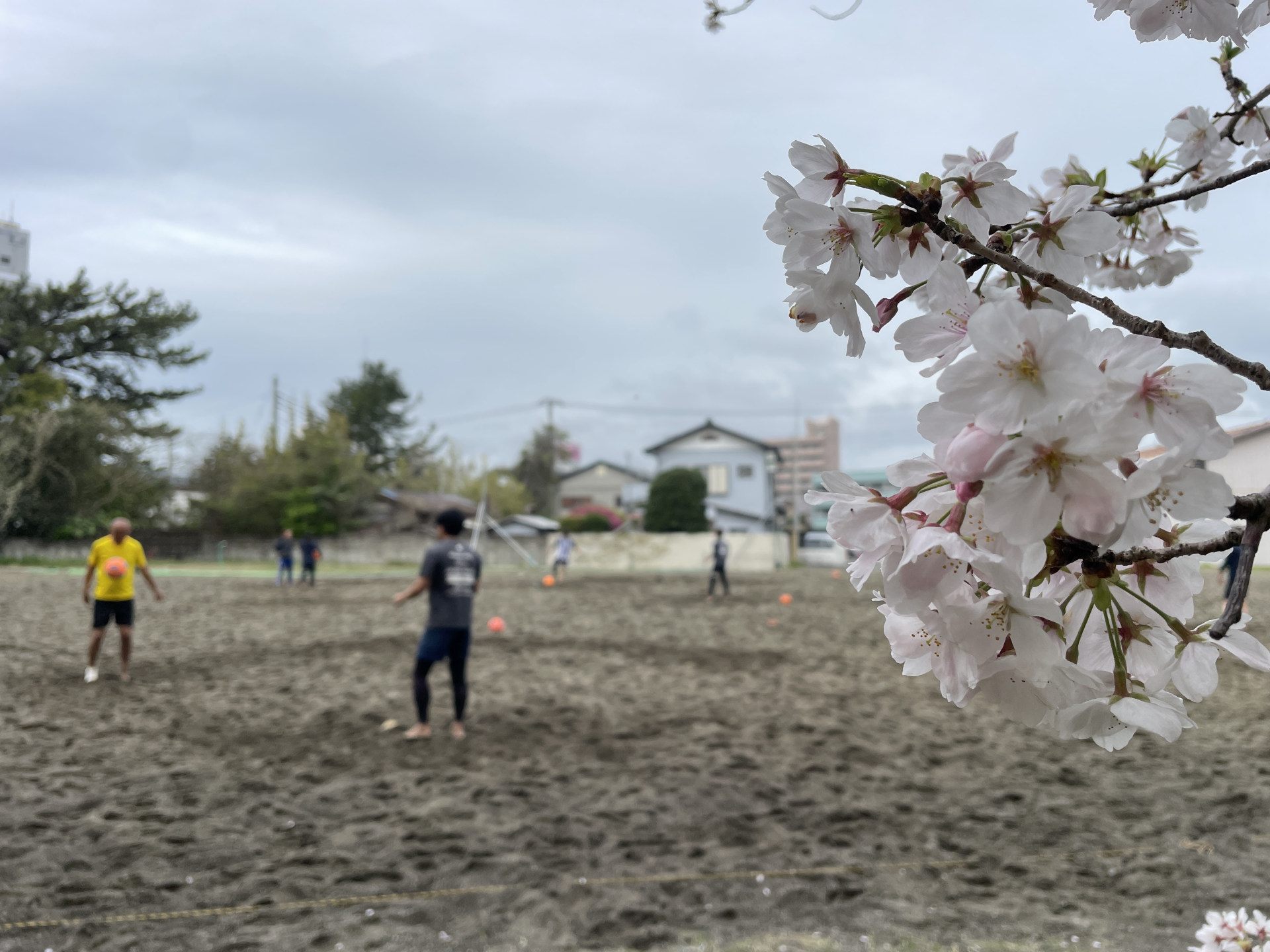 ピッチの周り、ちょうど真ん中のところに植わっている桜もほぼ満開となり、桜咲く中、まさにお花見トレーニングとなった。