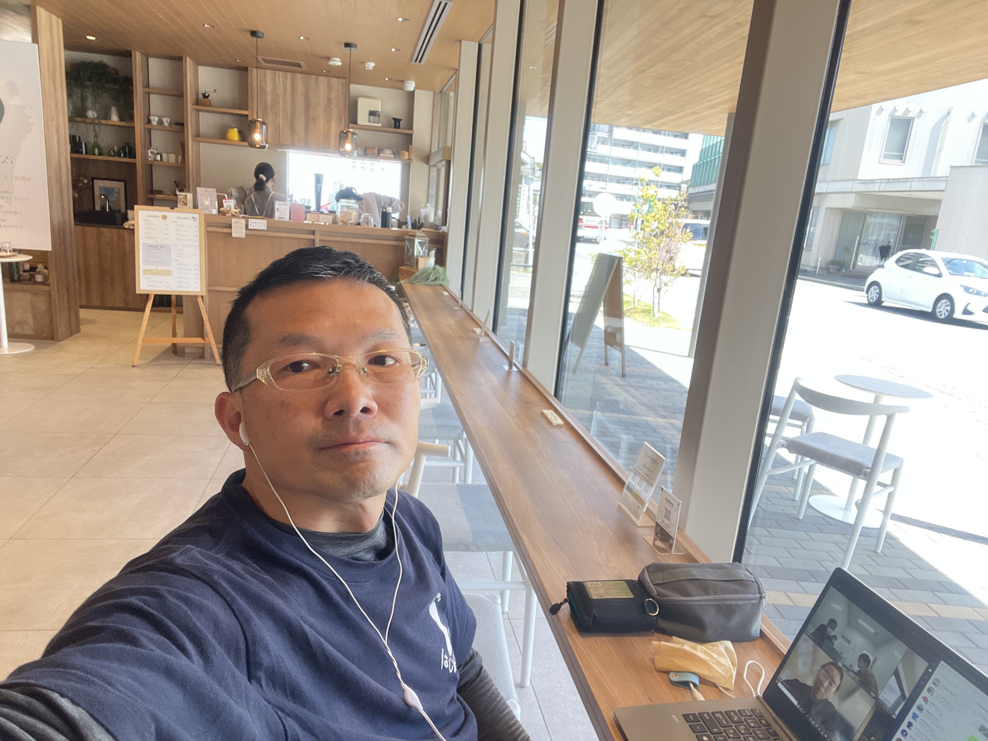 午後1時からオンラインミーティングを入れてしまっていたので、二日市前のステキなカフェの一角で会議に参加。