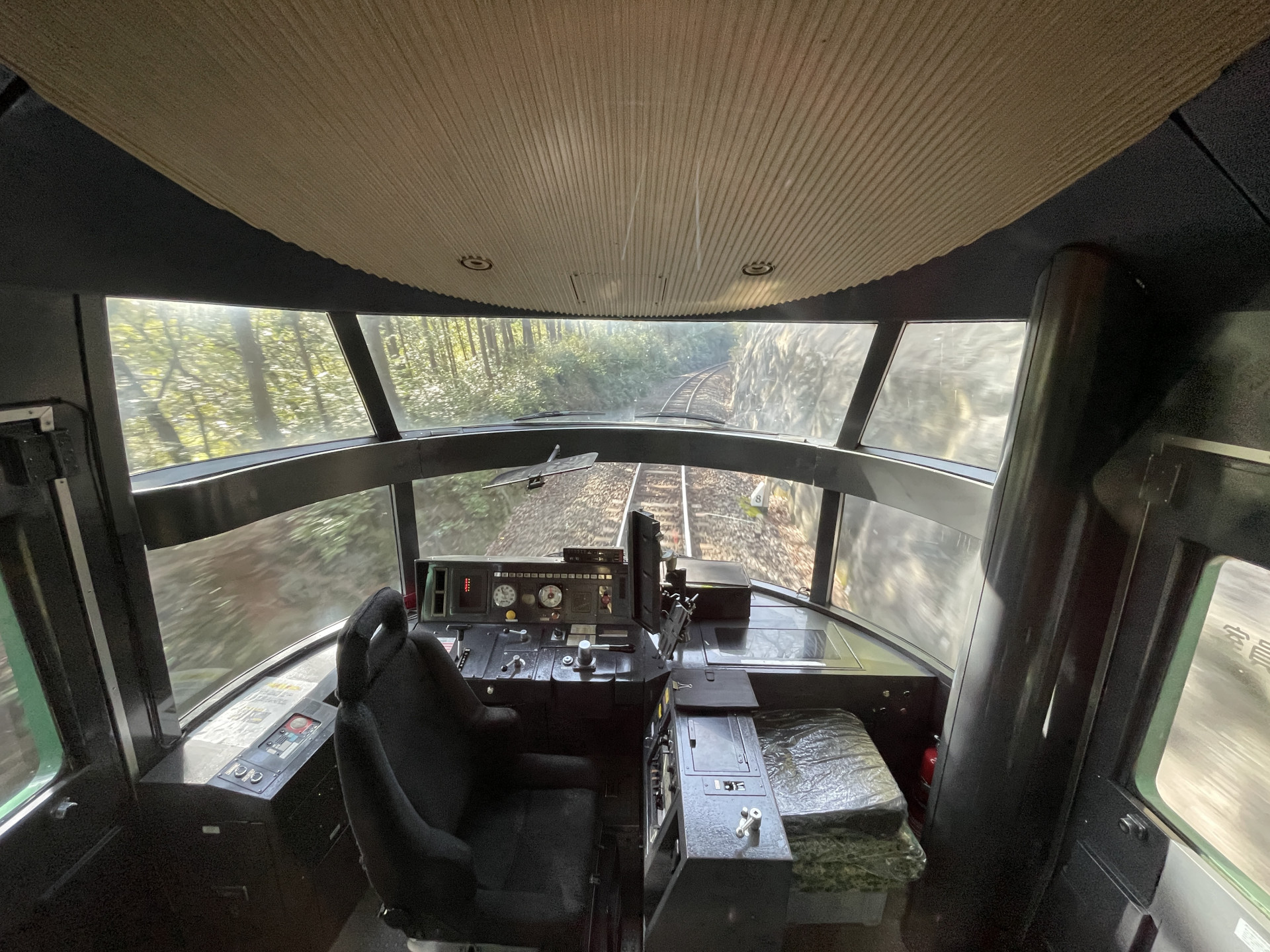開放感あふれる車内で、途中、車内放送でガイドもあったり、今どきめずらしくなったビュッフェ車両や車内販売もあったりして、まさに観光の旅を堪能できる列車である。