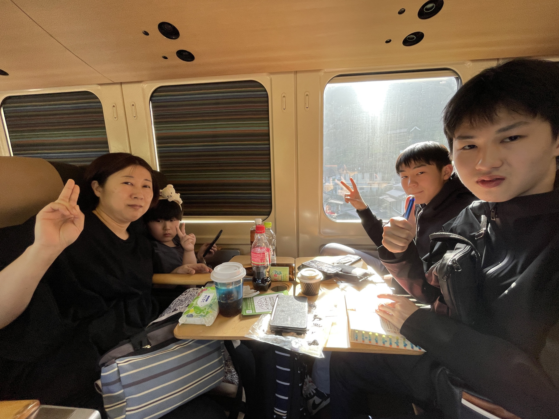 我々は5人家族のため、私は必然的に?他のシートに座ることになるのだが、私のボックスシートは3人の台湾から来たという親子で、英語でコミュニケーションを取りつつ、娘さんにははっちゃんよりも下の娘さんがいるようで、そんなやりとりをしながらの旅となった。