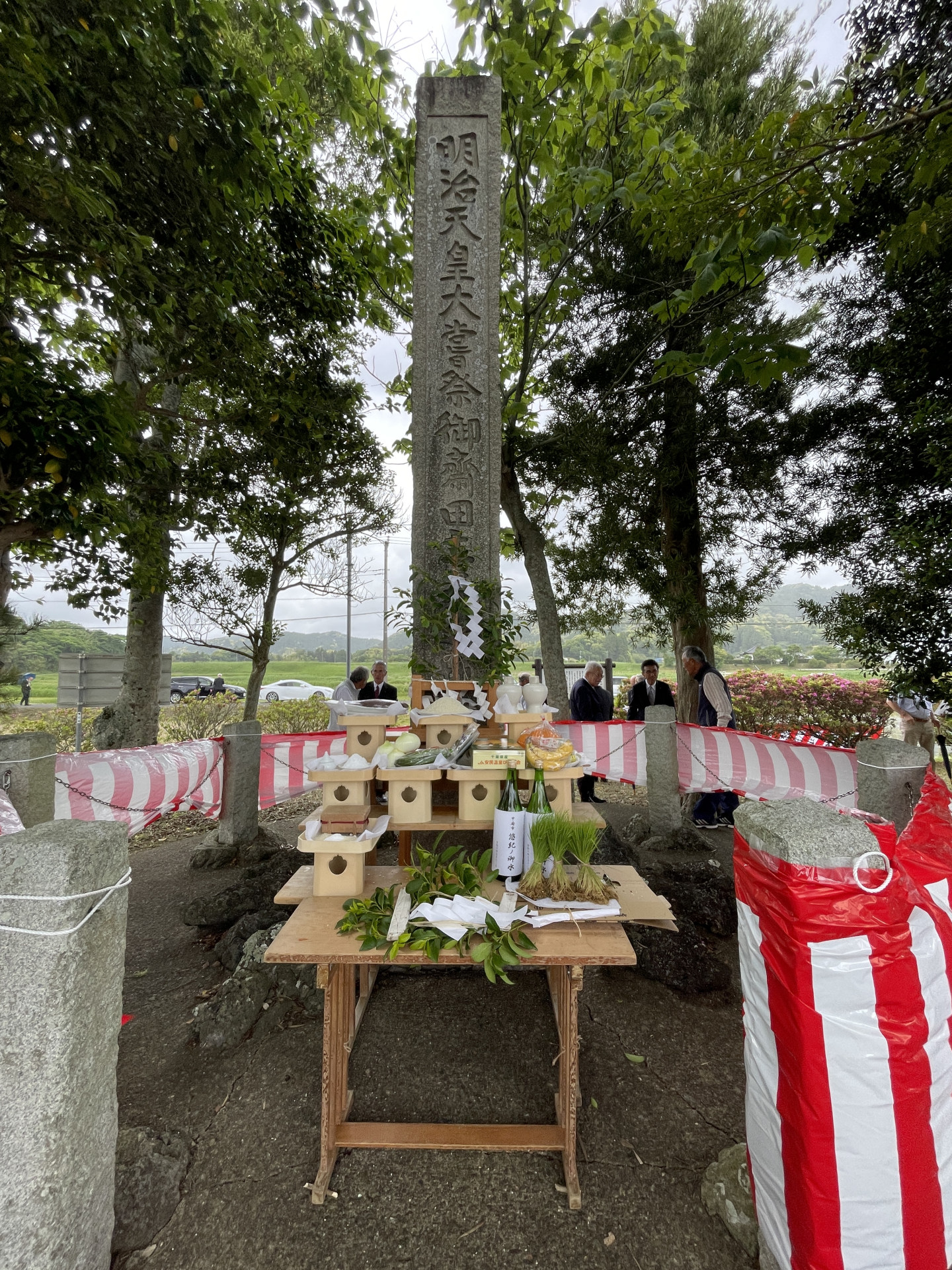 鴨川市副市長のほか、明治神宮からも代表者が参列し、明治天皇大嘗祭で卜占され選ばれた名誉ある主基田の歴史を次代に継承していくべく、心を込めて祭典をご奉仕させていただいた。