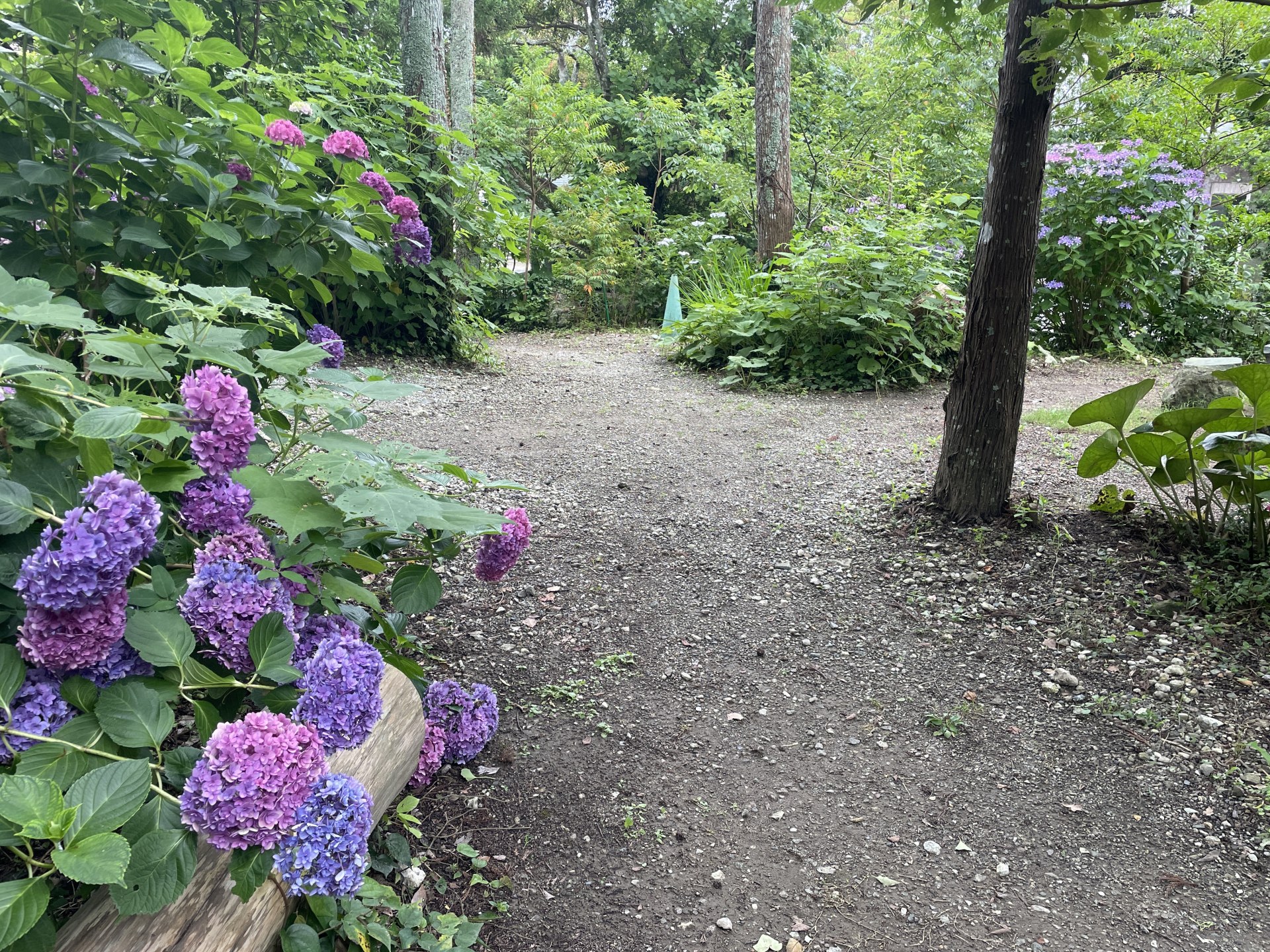 [写真:さまざまな種類のアジサイが咲く小径を散策してみては?