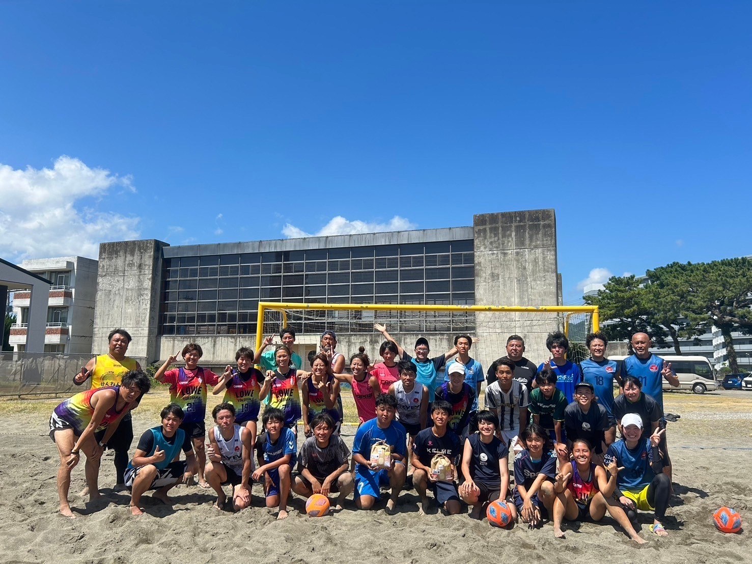 今日は安房高校のメンバーも参加してくれ、また、ビーチサッカーが初めてという子も……。