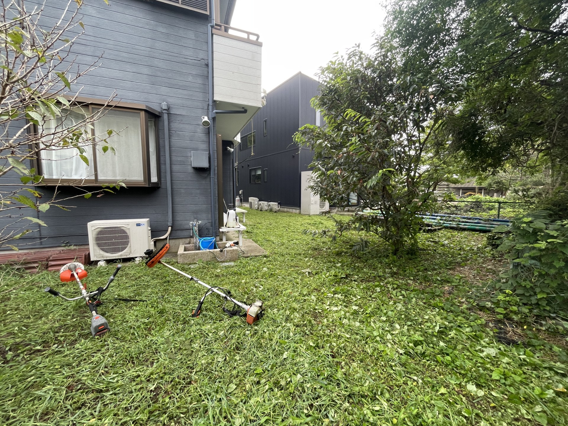 自宅・宿坊の庭の草丈がだいぶ伸びてきたので、朝一で草刈り機をまわしての作業。