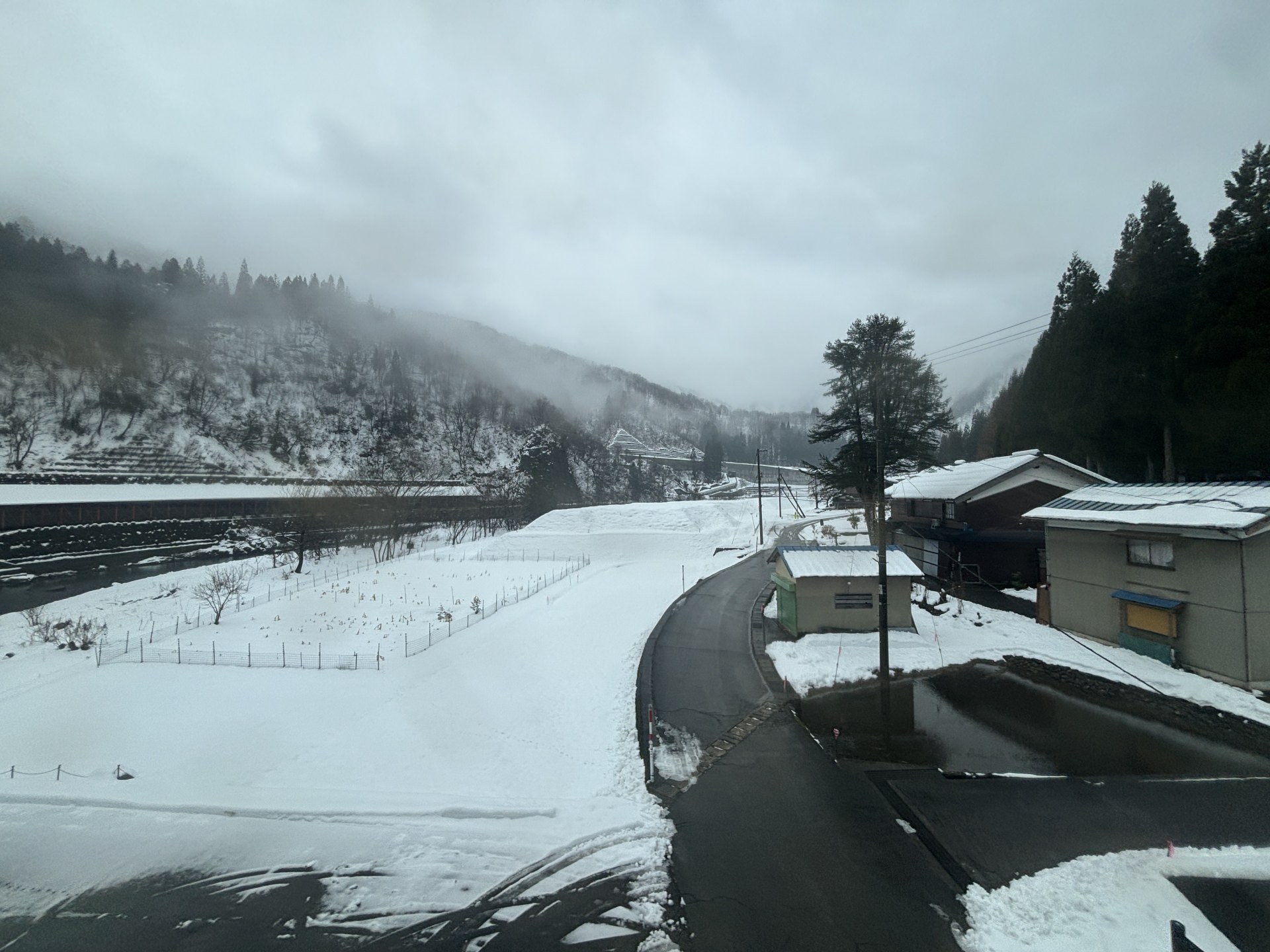 福井は雨だったが、1時間ほど走ると、一山越えて辺りは銀世界に。