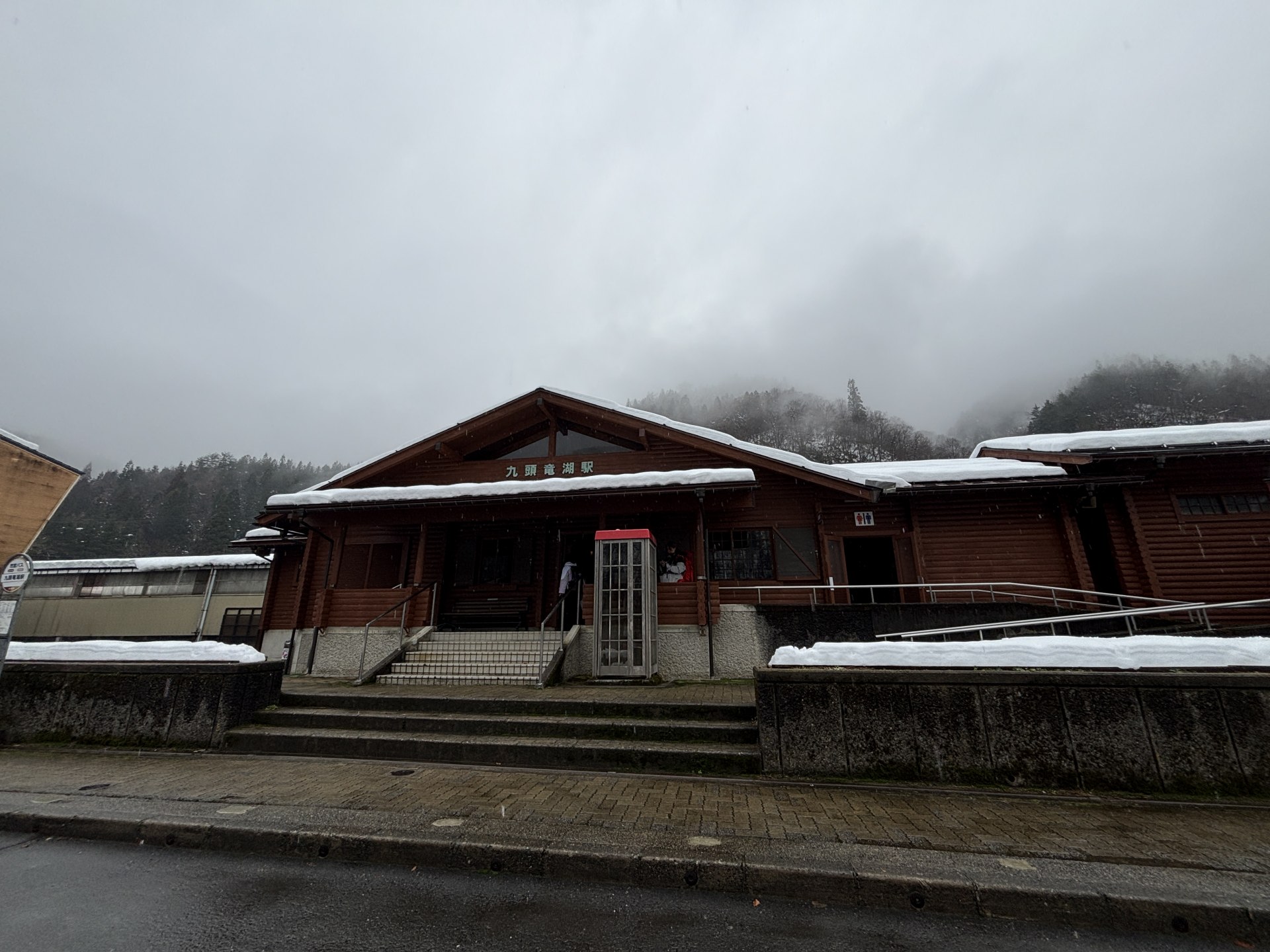 [写真:終点・九頭竜湖駅はログハウス風