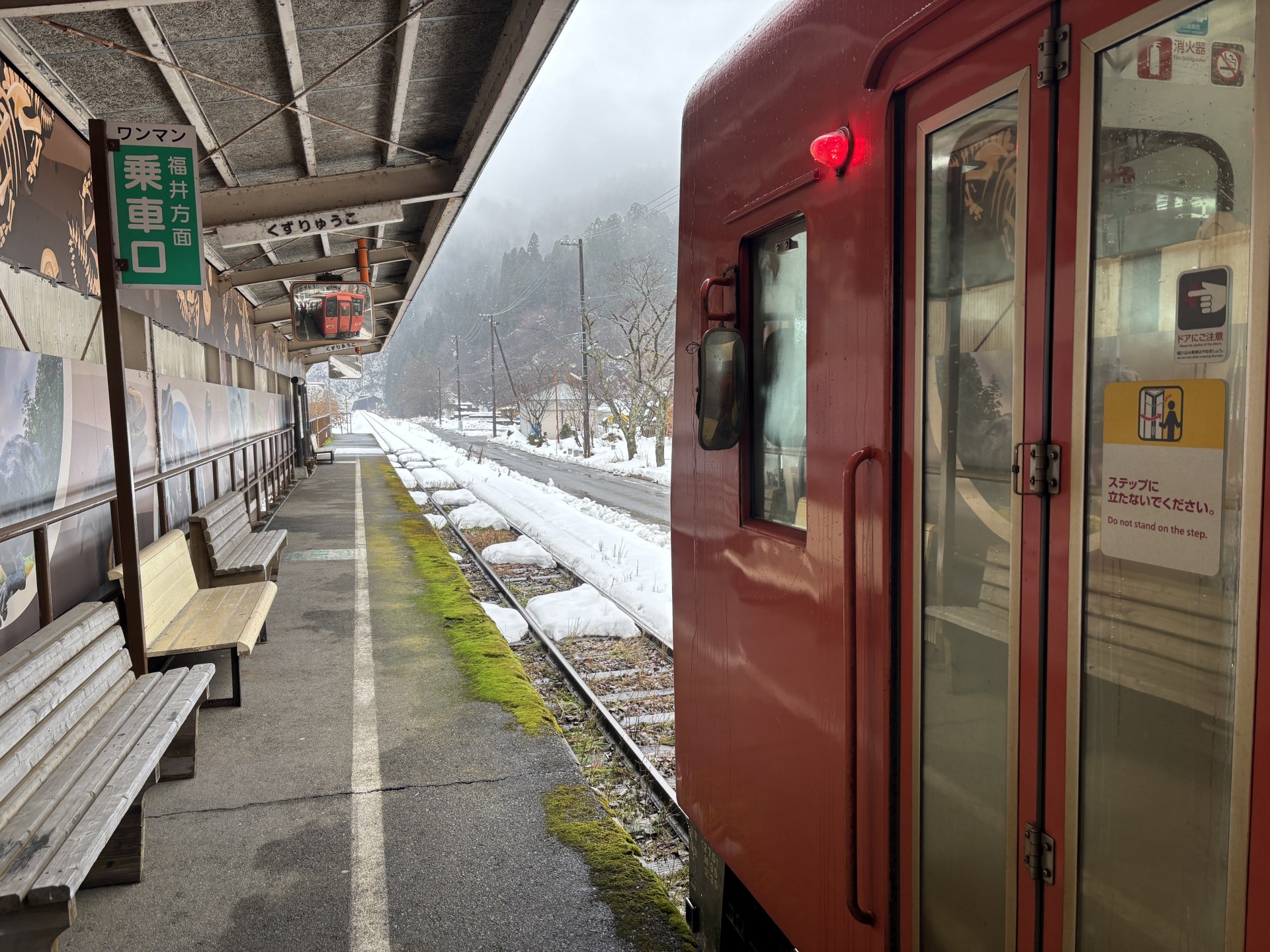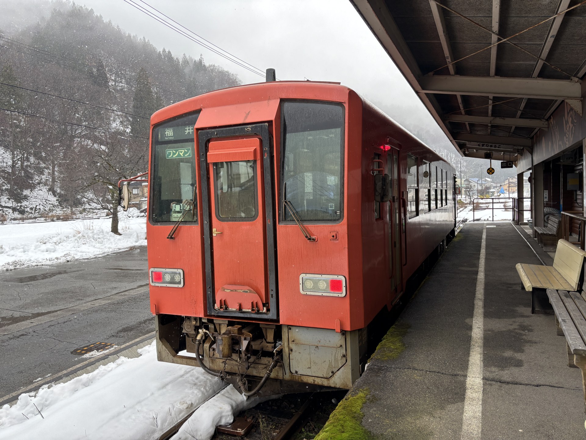 1両編成のワンマンカーに揺られ、1時間半ほどで終点・九頭竜湖に到着。