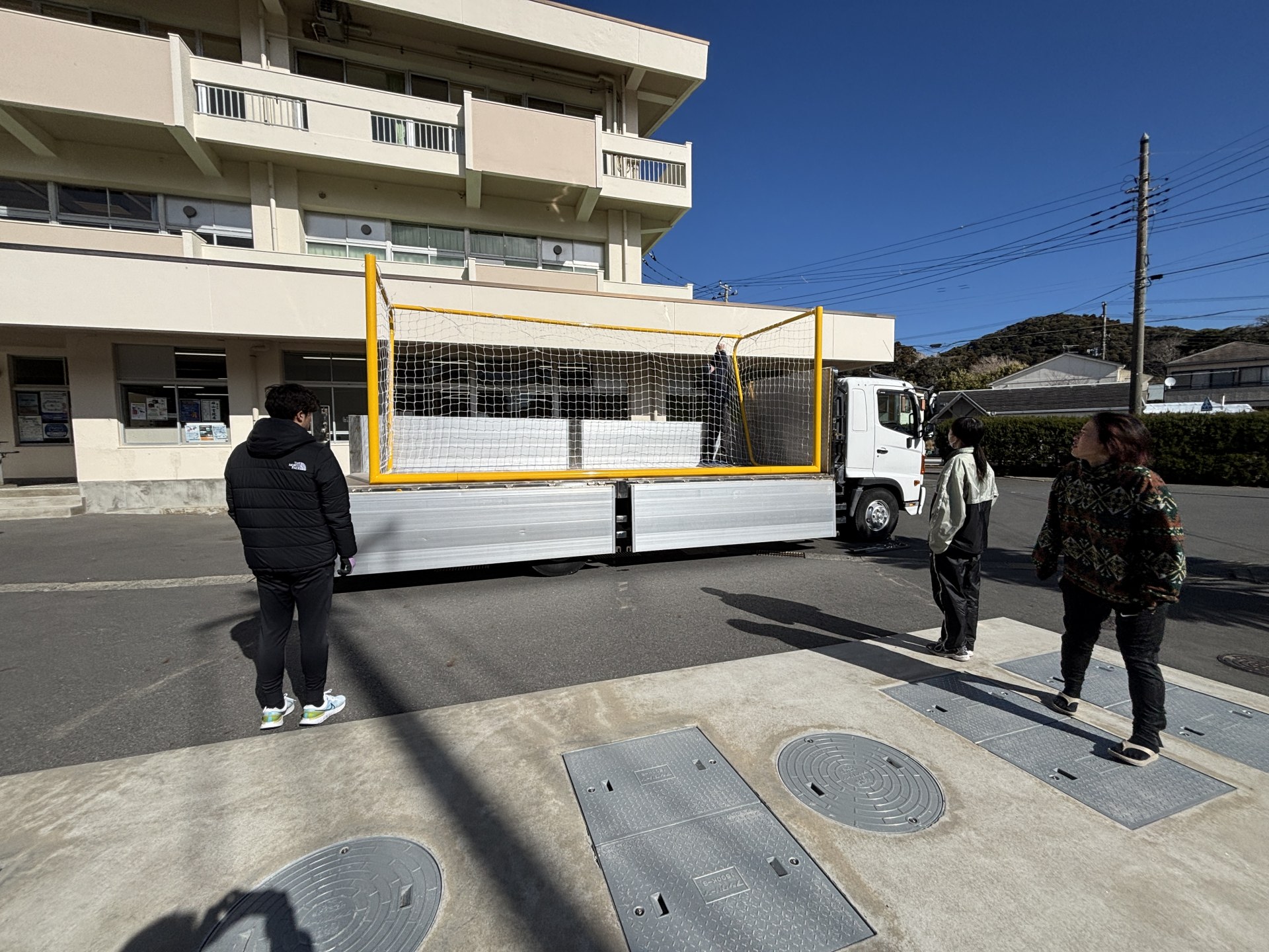 午前中、さいぶさんの協力により、ビーチサッカーゴールを明日のカモガワビーチパラダイスの会場となる二タ間海岸に運搬。