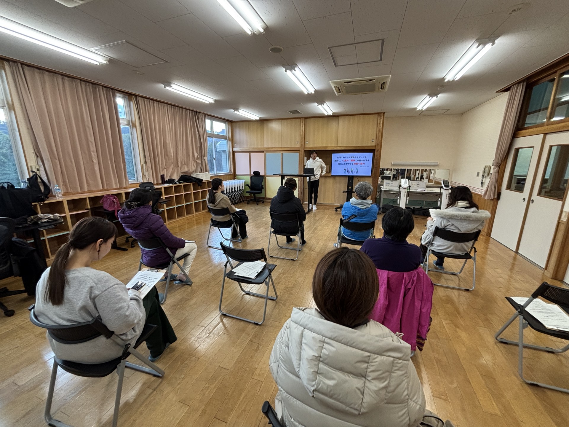 夕方、旧ひかり保育所に、今回の事業でつくったコワーキングスペースを活用して、たまちゃん講師による、フィジカル・リテラシーをテーマとした研修会をモデル事業として実施。