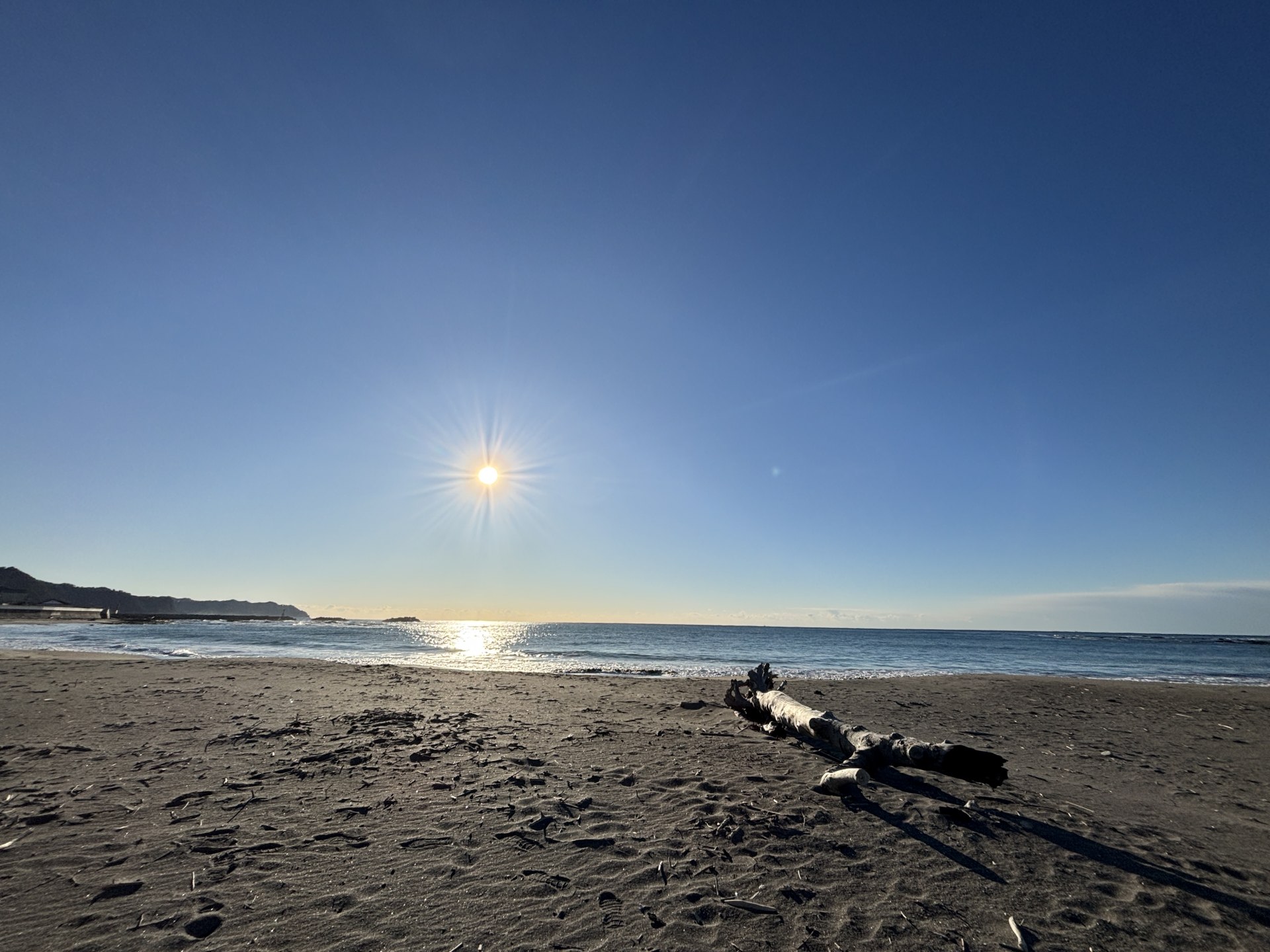 真冬の砂浜の上にあふれた笑顔が、太陽と海とともにキラキラと輝いていた。