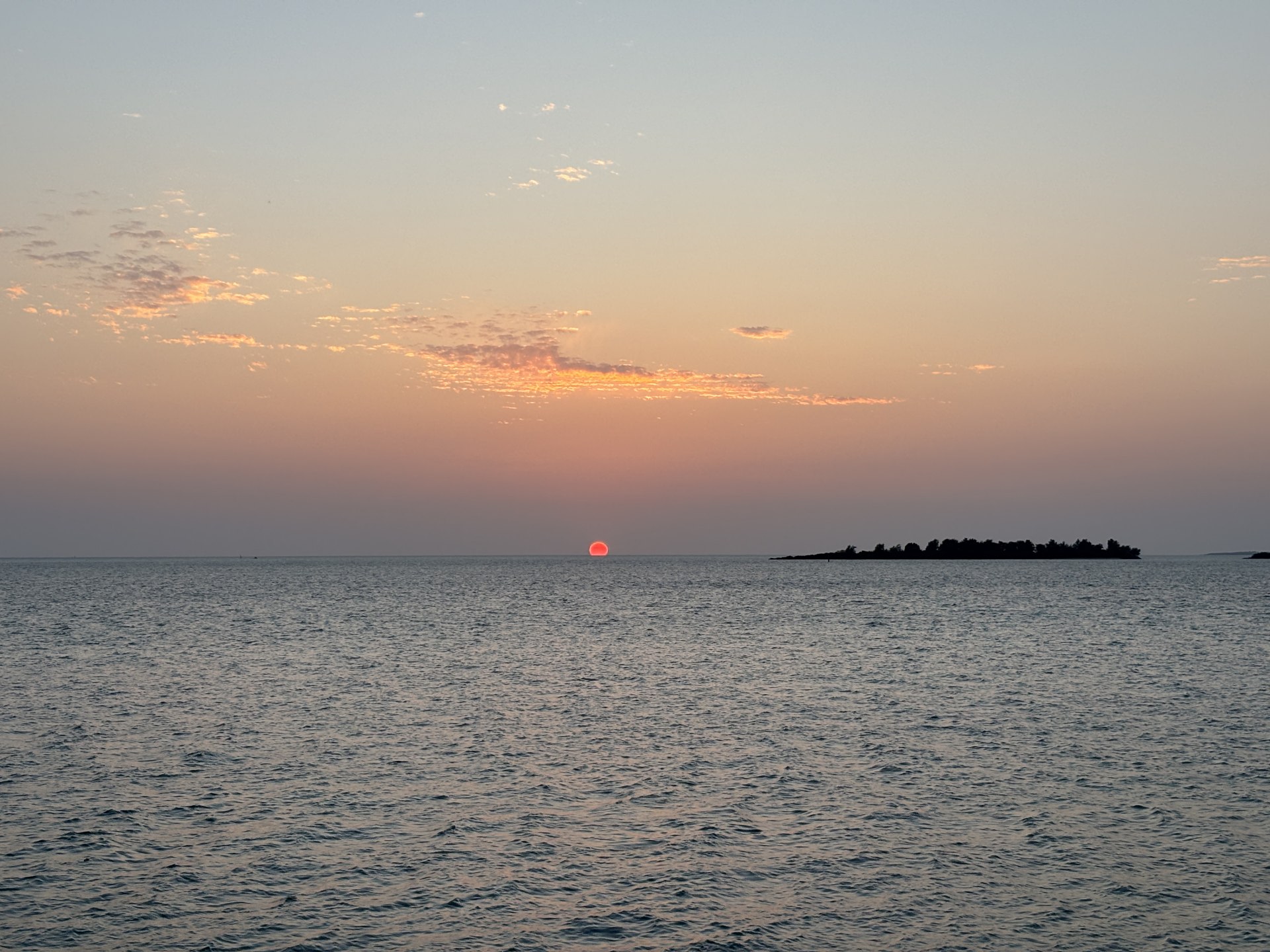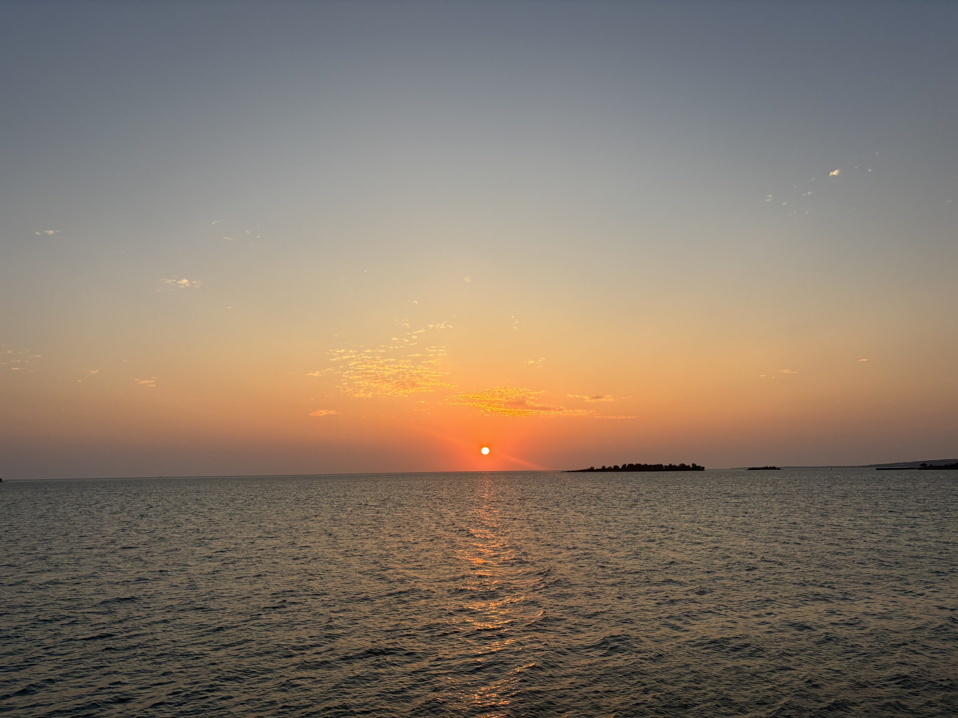 今日はくっきりと太陽が沈んでいき、水平線までしっかりと見ることができた。