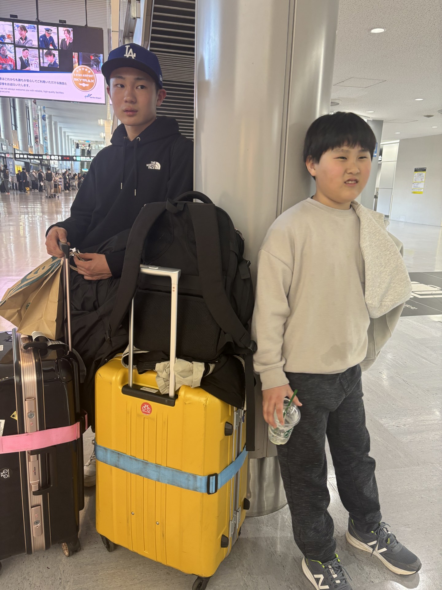 成田まではちかちゃんといぶたん、さらに母も迎えに来てくれていて、出国も手荷物受取も検疫もあっという間に終わり(一点、なぜか検疫犬が二男のナップサックに反応し、中身チェックとなるハプニングはあったが…笑)、30分ほどで到着ロビーにて合流できた。