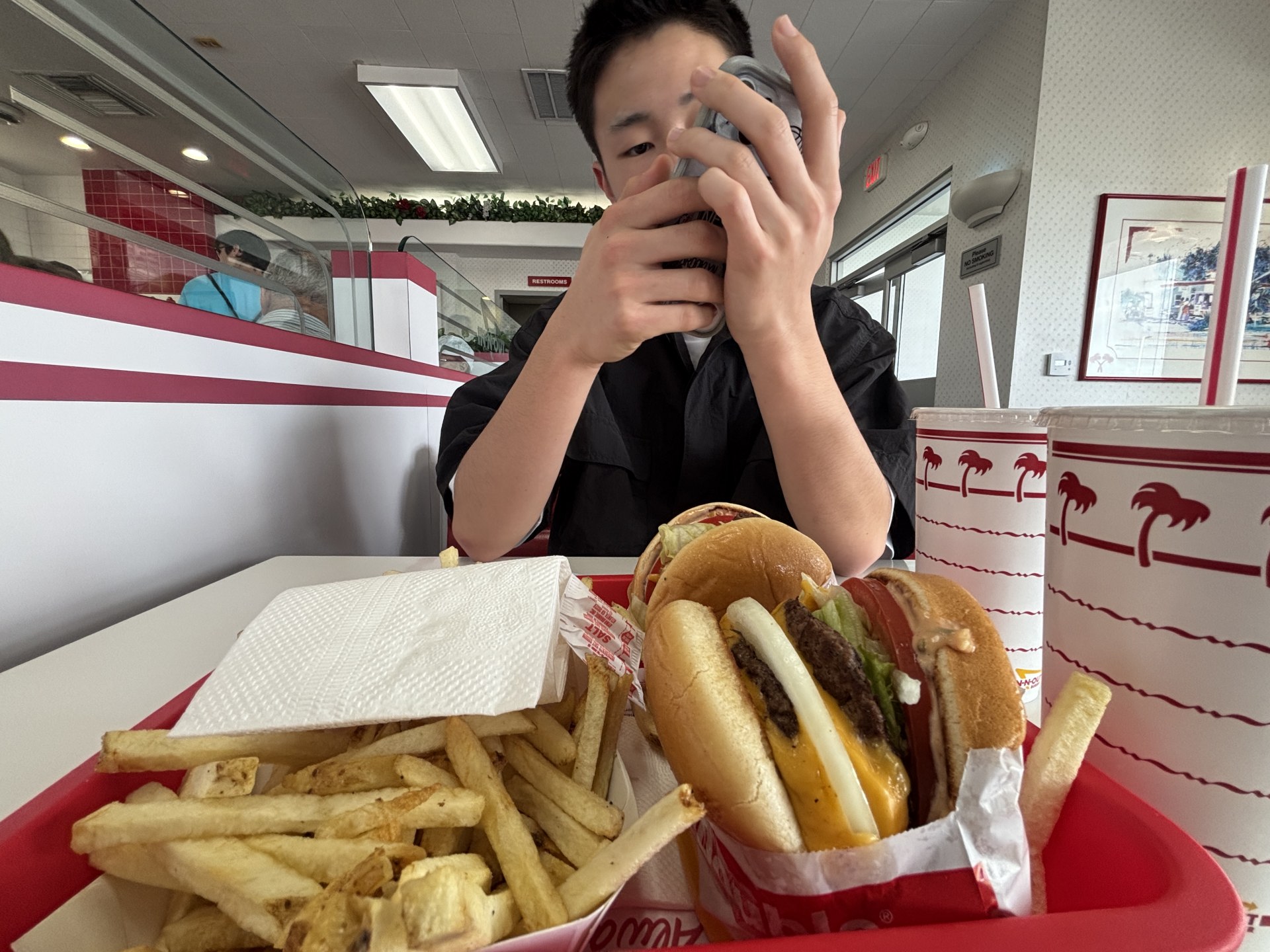 途中、給油すると、ランチはキングマン(Kingman)の、アメリカでは人気のハンバーガーチェーンの一つ IN-N-OUT にて。