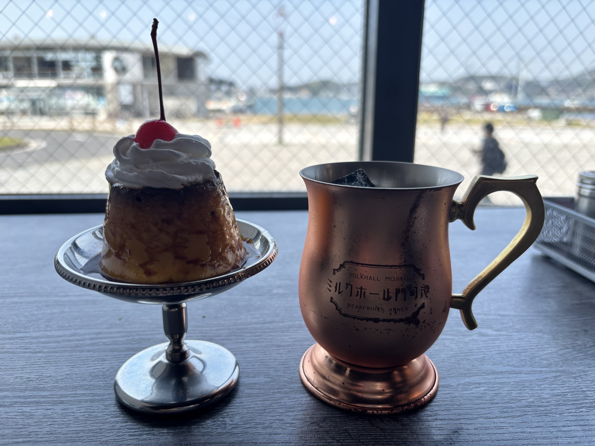 [写真:門司港のレトロな街では、焼きカレーとプリンを味わう。