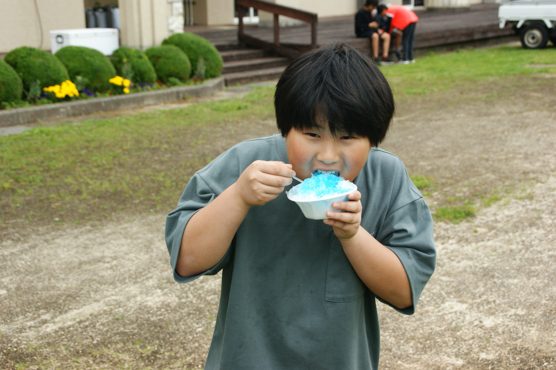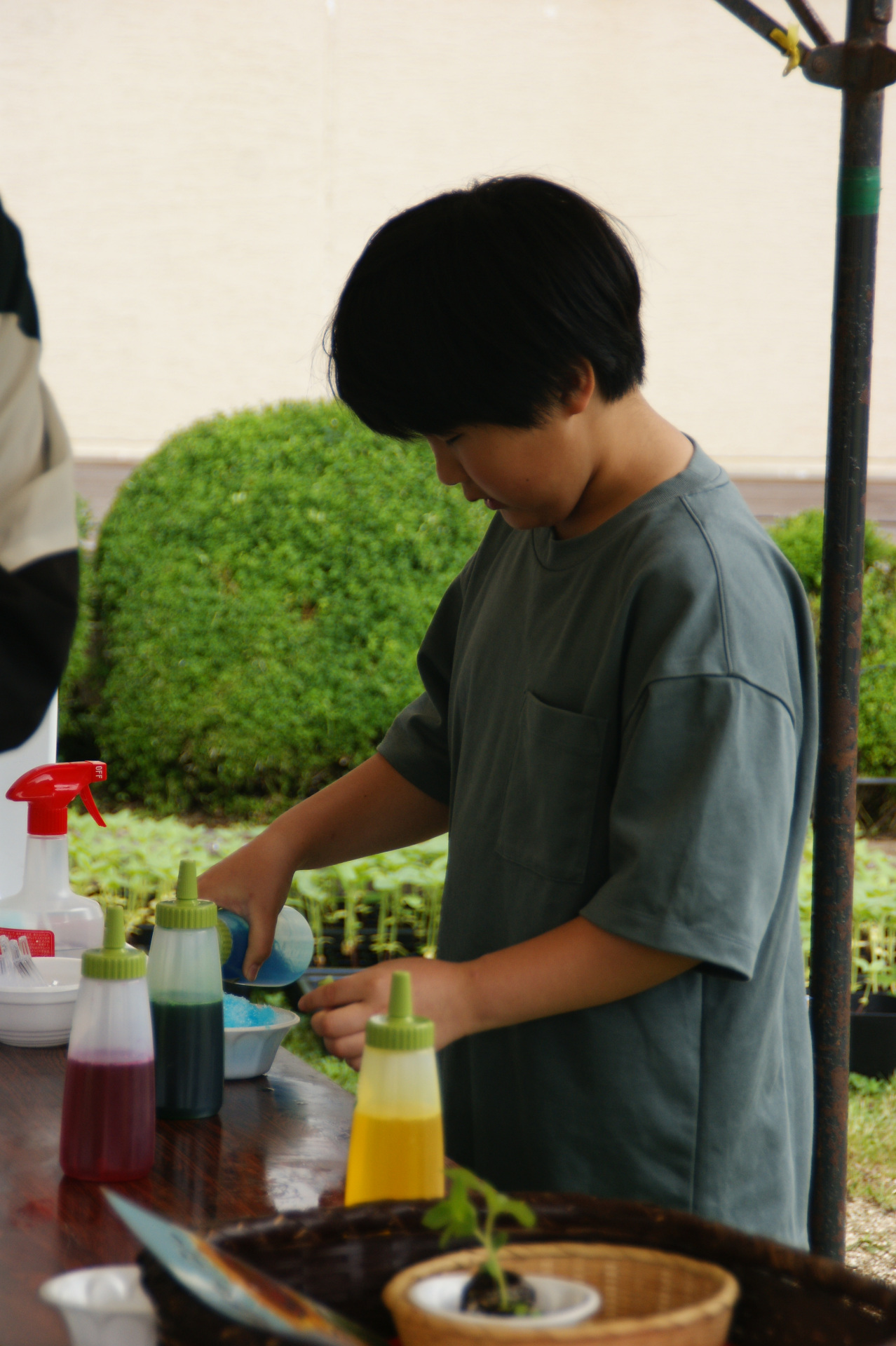 学校サポーターのみなさんが、かき氷のサービスと、ひまわりの苗の配布を行うということで、そのお手伝いも。