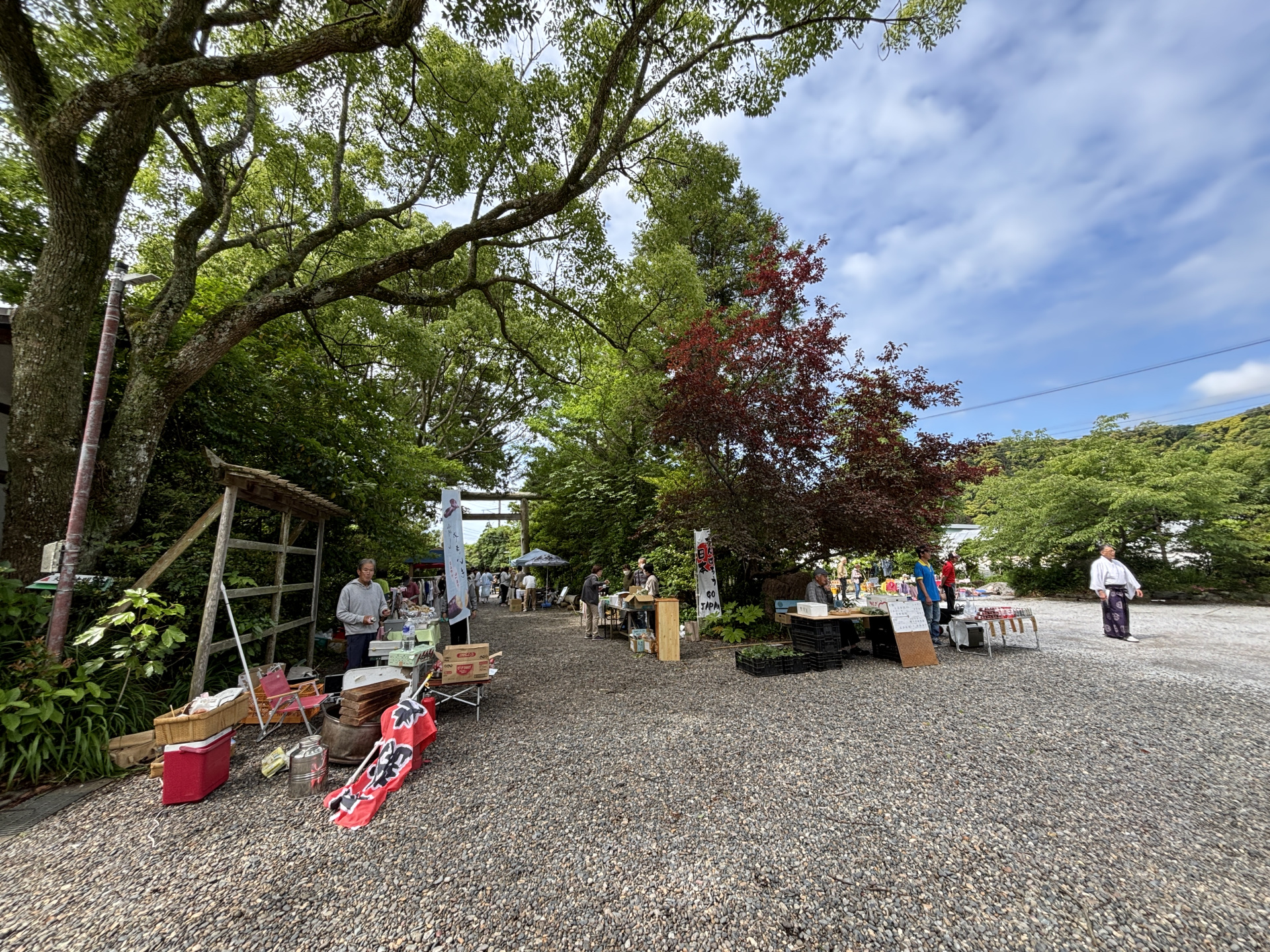 神社では朝7時からの朔旦祭の後、日曜なので、境内ではビッグおついたち市を開催。