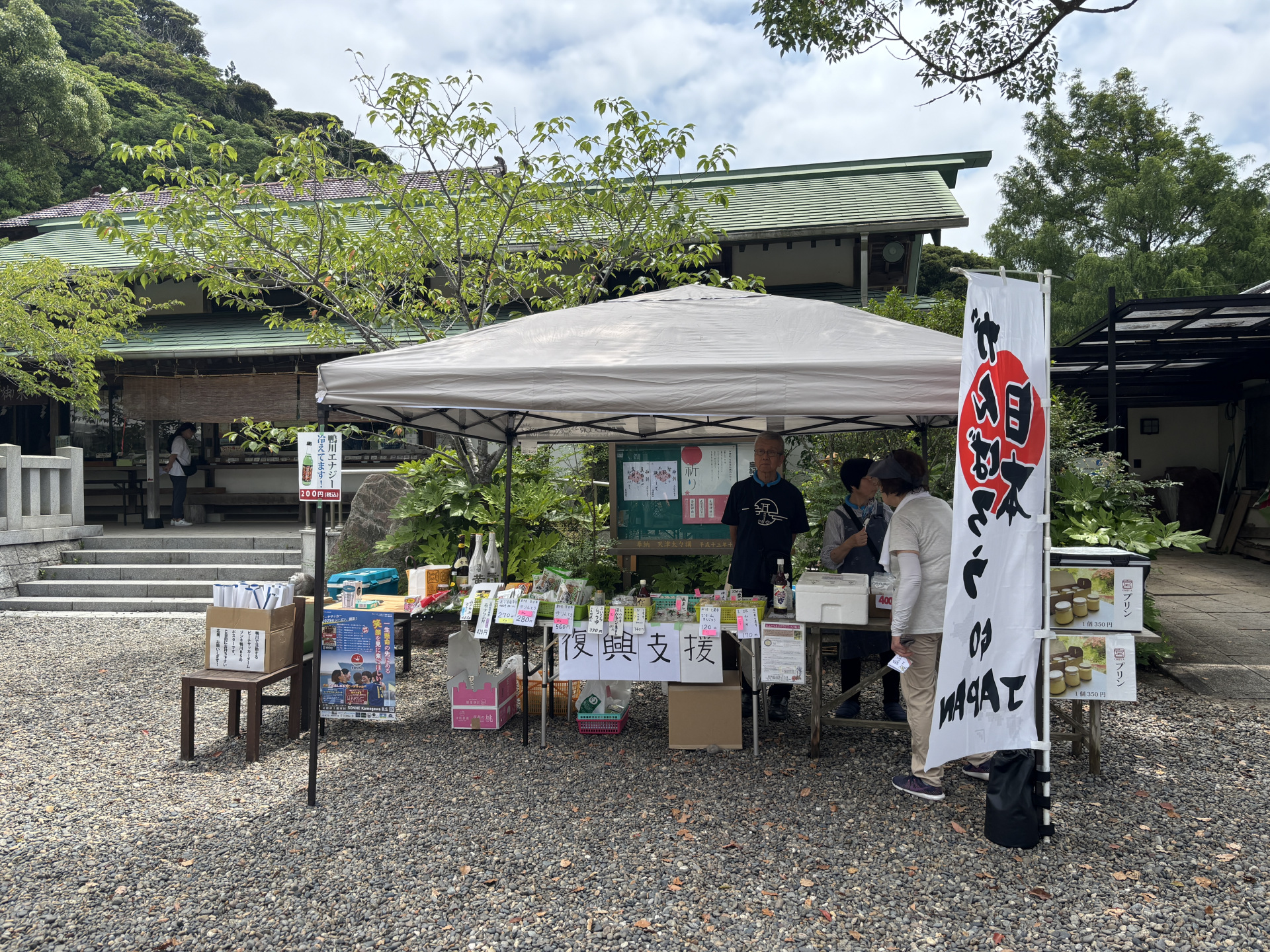 [写真:復興支援ブース。積み重ね