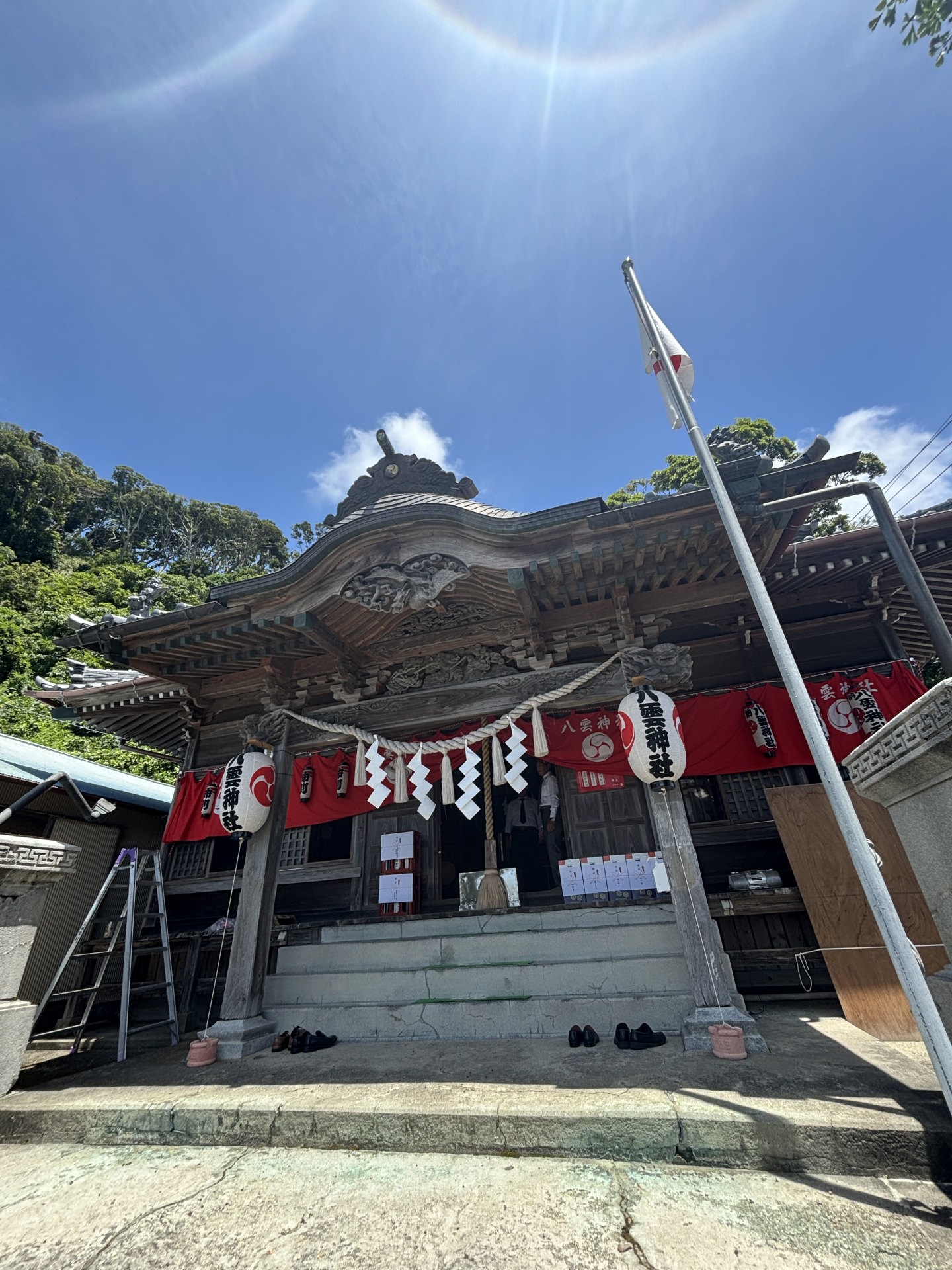 午前中、すばらしい快晴の下、小湊地区4社の例祭式を弟とともに奉仕してまわる。