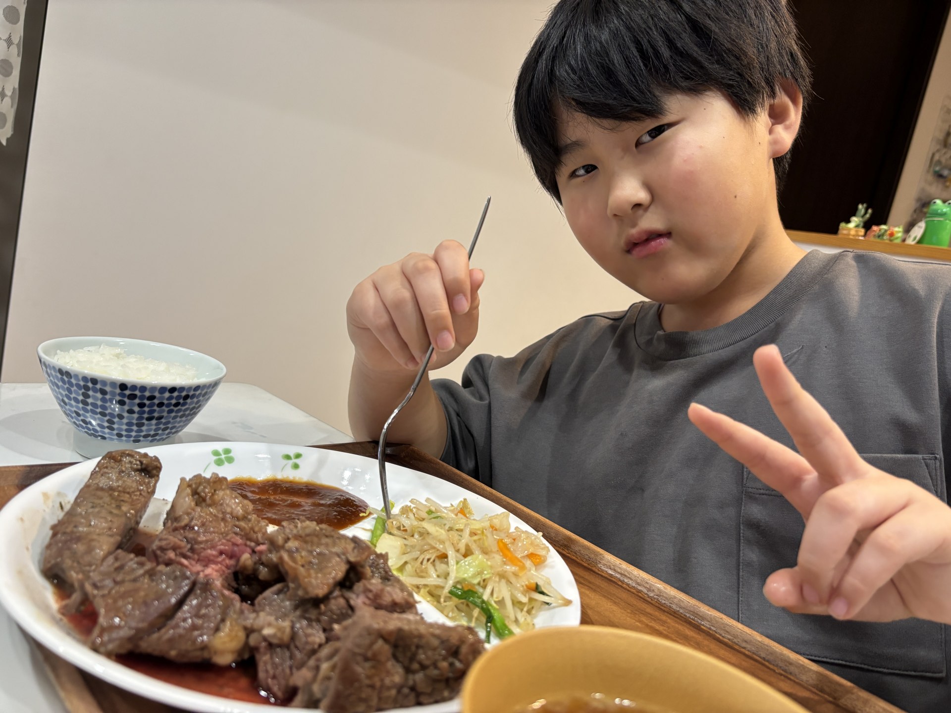 [写真:留守番男子2人で800g超のメガステーキに挑むも……撃沈!