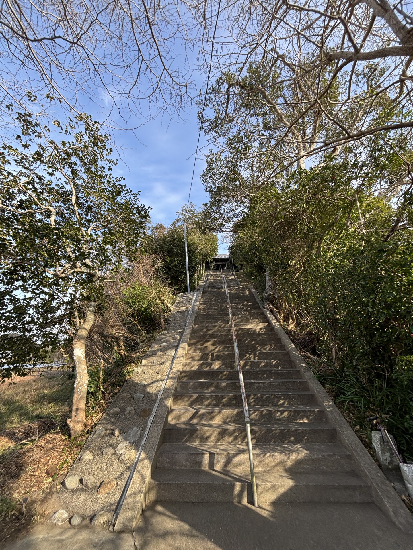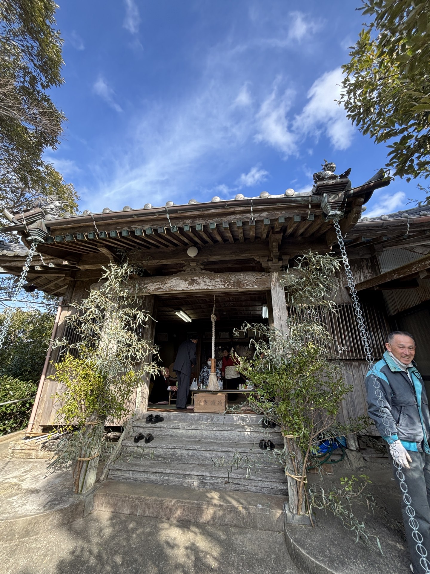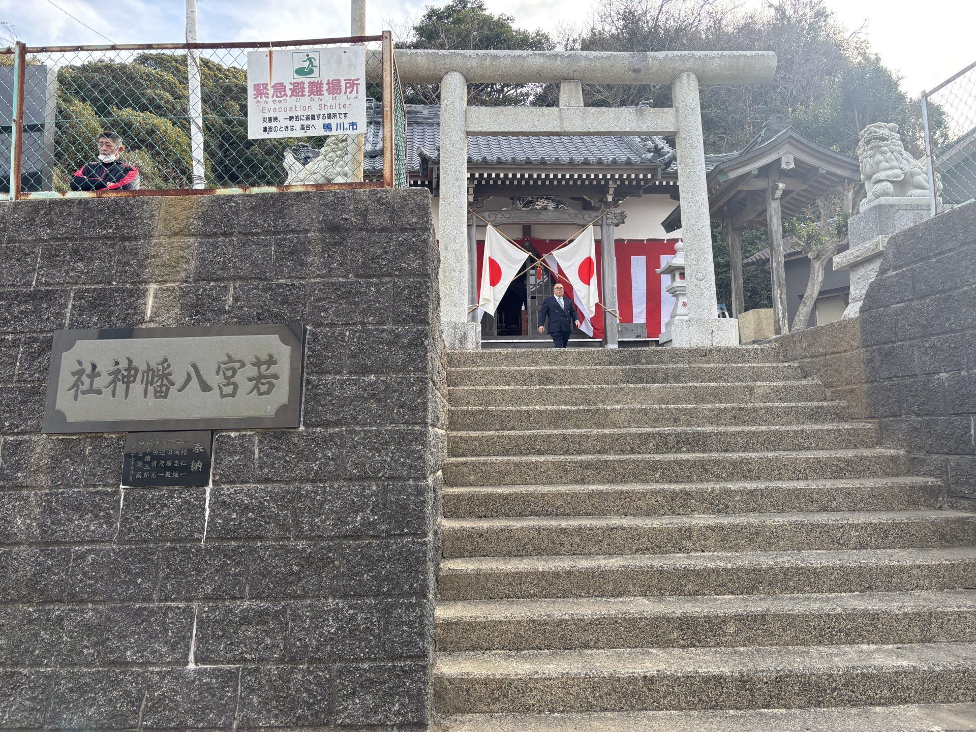 小湊地区はだいぶひどかったみたいで、トタン屋根に穴が空いたり、車も結構な被害を受けたようで、吾妻神社では突風で参道入口の樹木が倒れてしまったそうだ。