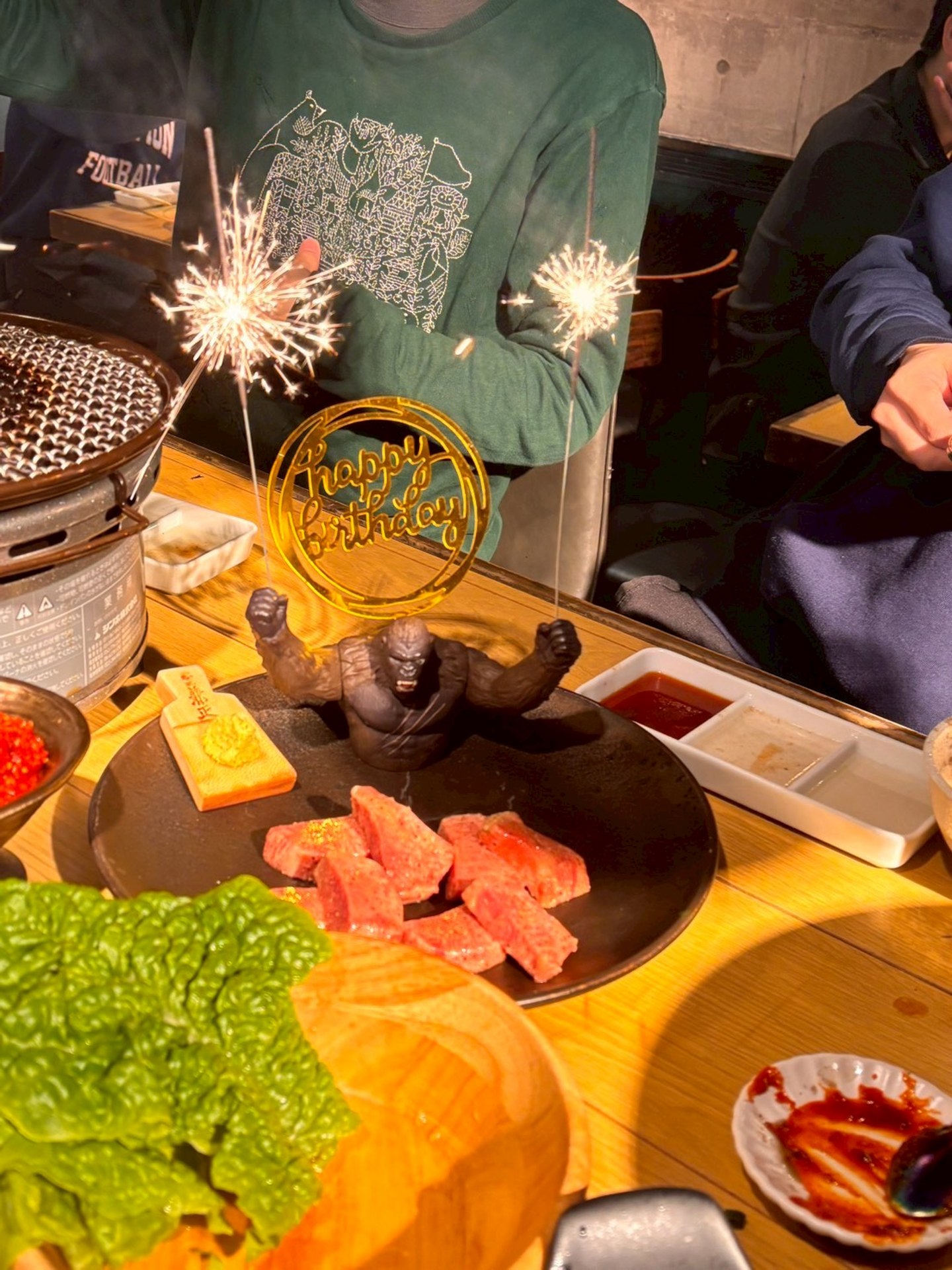 午後、荷物の開梱や、マンションの部屋の整理などを行い、夜は、みんなで引っ越し祝い、さらに二十歳を迎える長男の誕生日祝い、ついでに、あみも2月が誕生月ということで、王子駅近くに3年前オープンしたという焼肉店でお祝い。