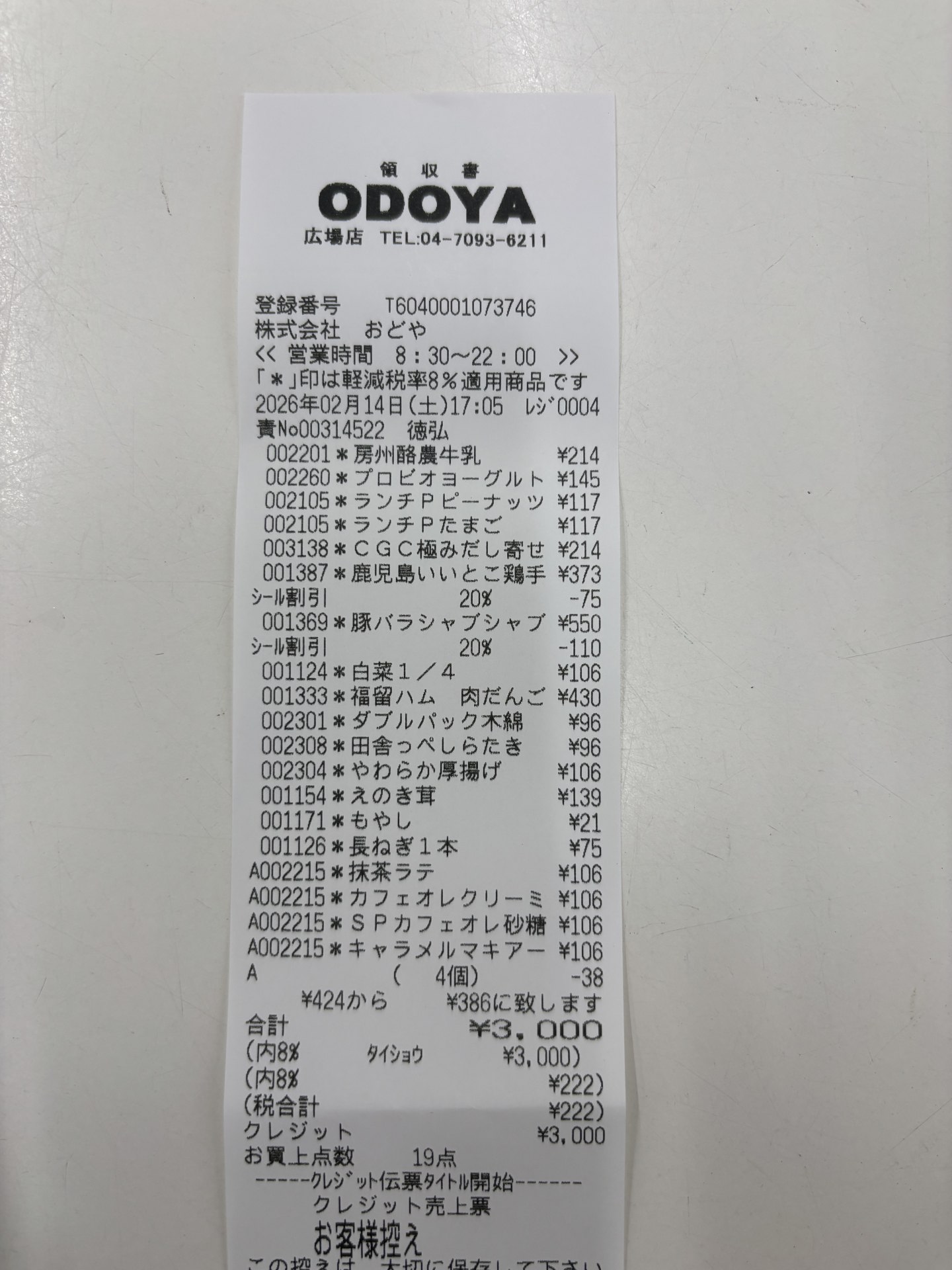 [写真:なんか幸せ♪合計金額キリ番。消費税ゾロ目。