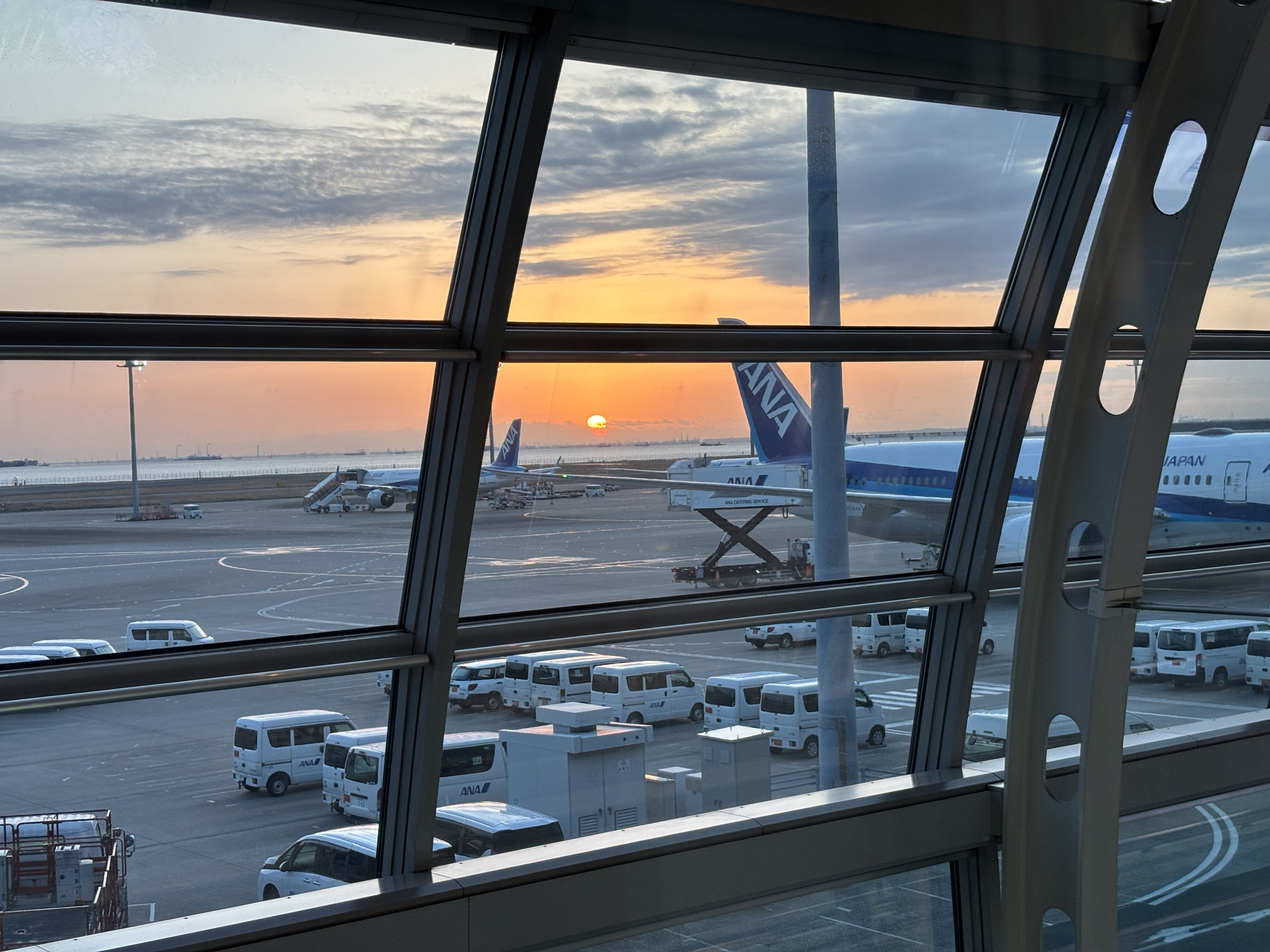 [写真:羽田空港で朝日を拝む