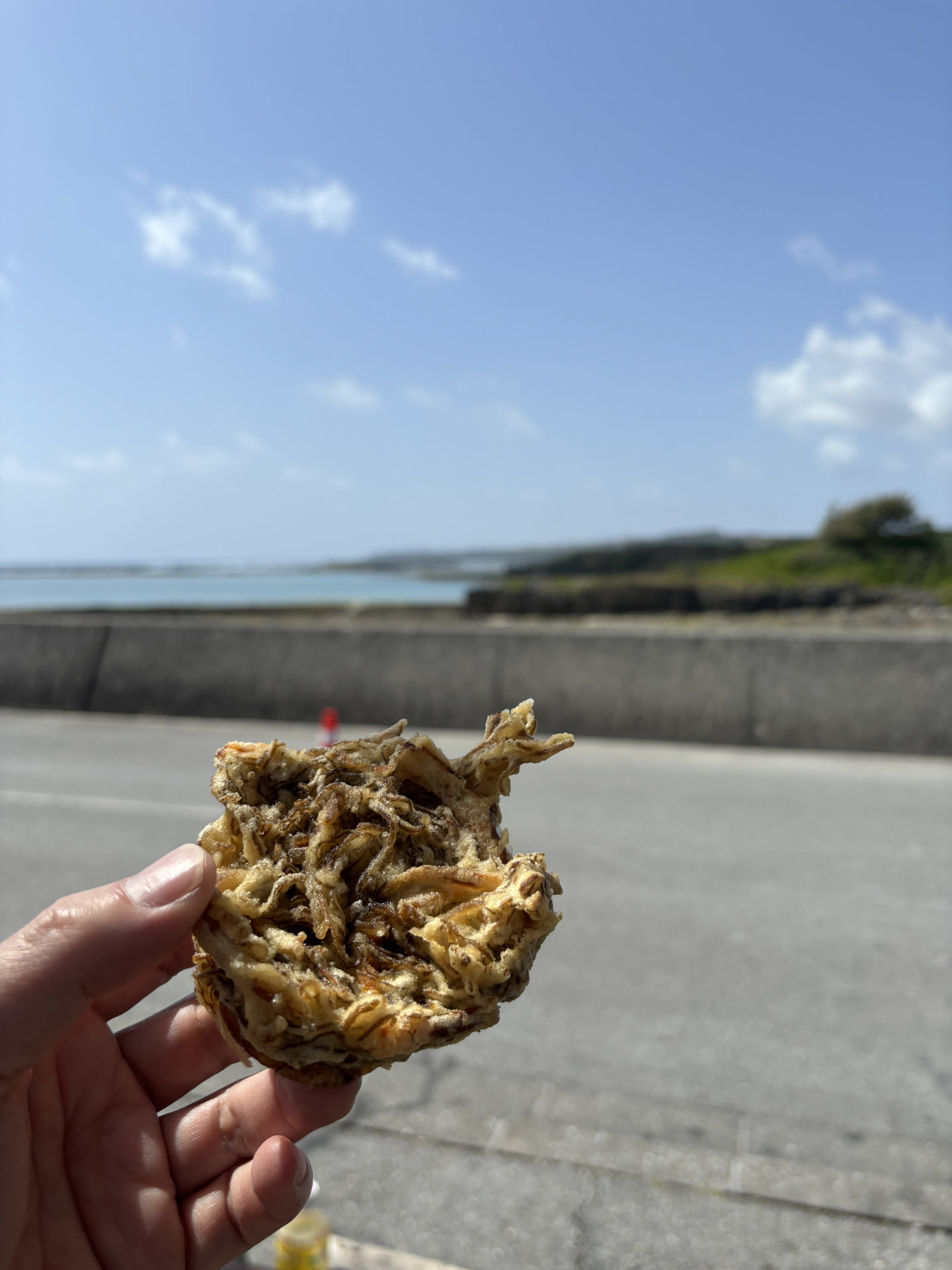 本土のてんぷらと違って、どちらかというと、ホットケーキミックスのようなしっとり生地。