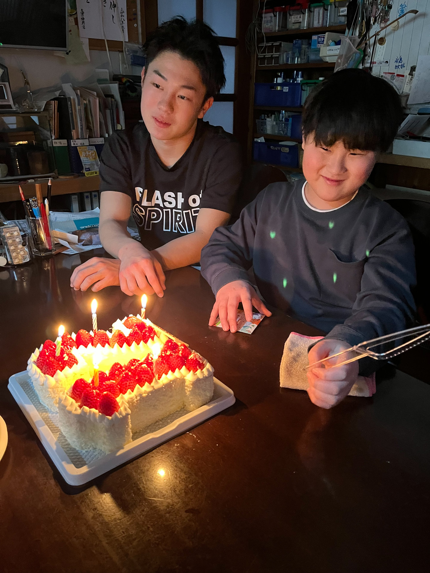 今日は14時46分に黙祷を捧げ、夕方はケーキを用意して、三男の誕生日祝い。