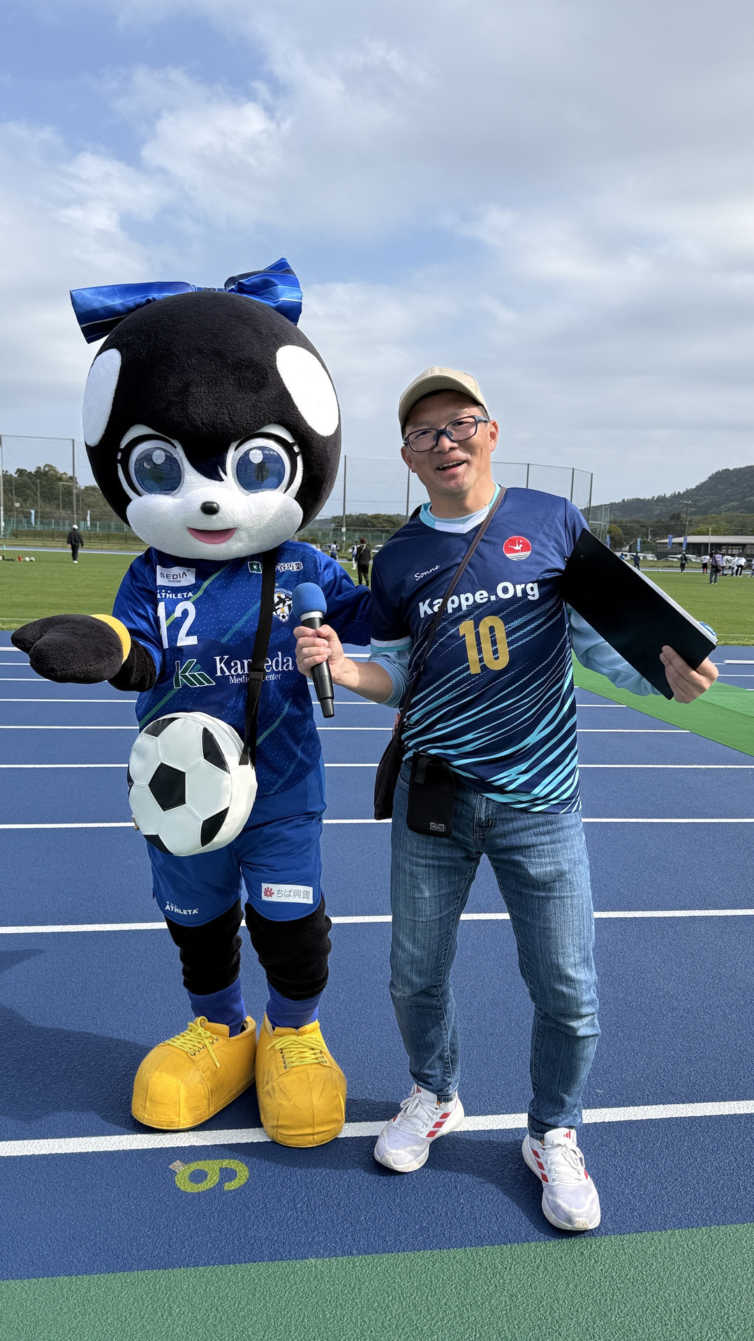 続いて、オルカのホームゲームを観戦した後、午後はオルカのなでしこリーグの試合が終わったばかりのワタレイスタジアム(陸上競技場)で決勝ラウンドを行った。