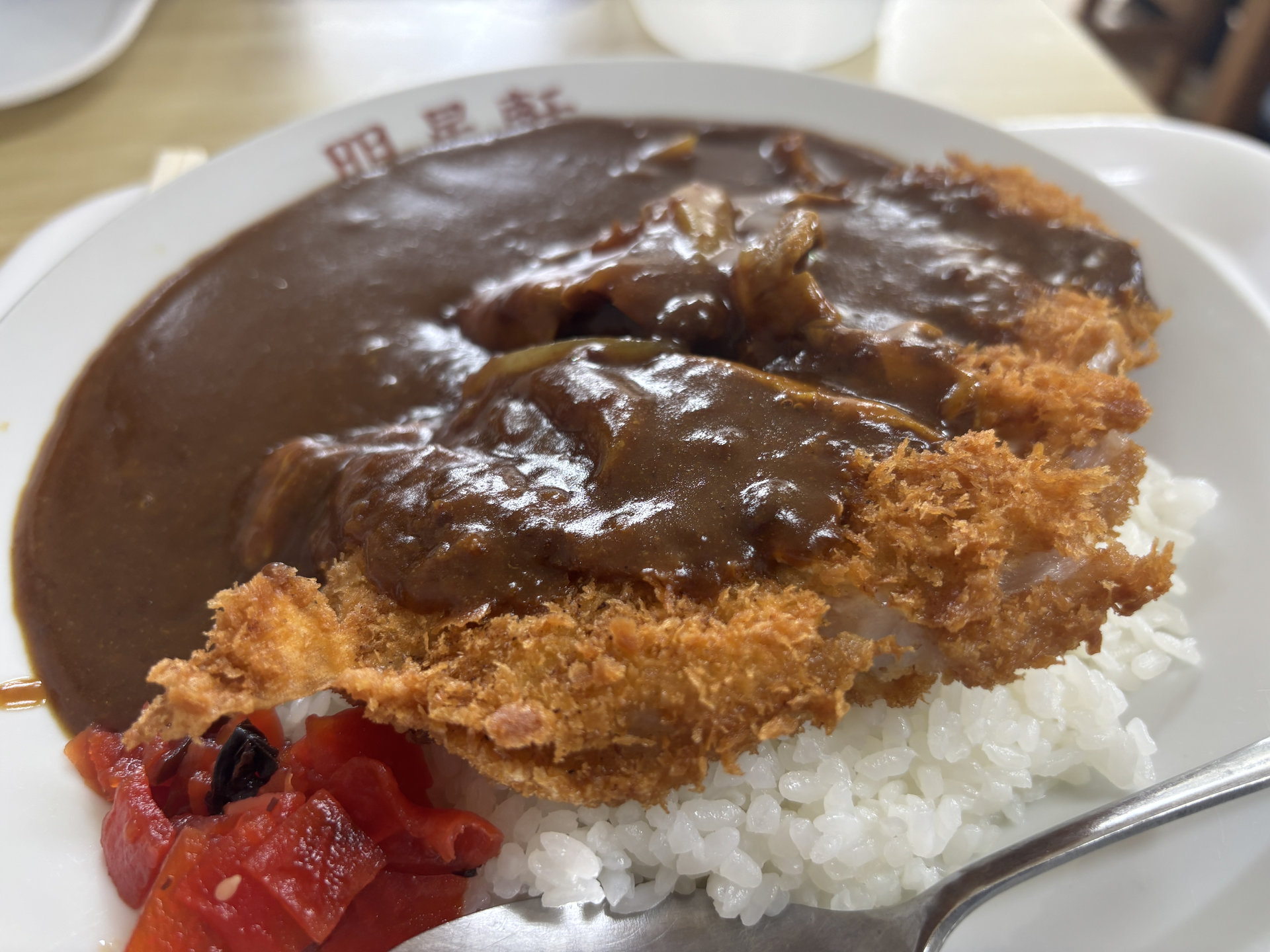 ランチは明星軒のカツカレー。