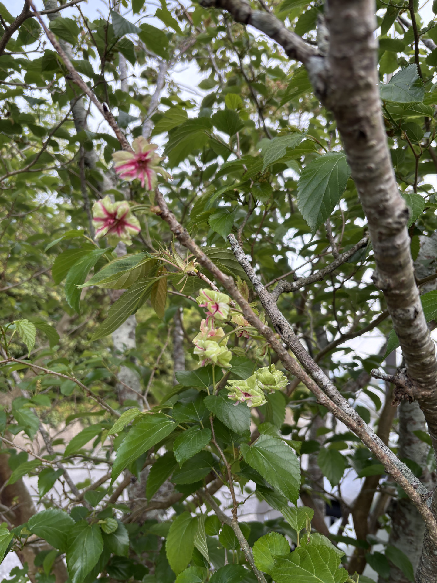 [写真:緑色の花を咲かせる御衣黄桜