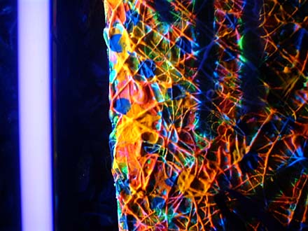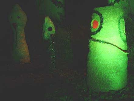陶器のオブジェにロウソクを入れてみたり、いろいろな色の光線を当ててみたり。