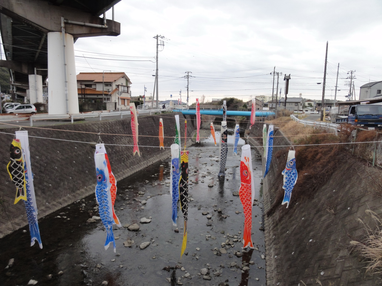 午後、3月1日の「天津たいのぼり祭りキックオフ」に向けて、こいのぼりを掲揚した。