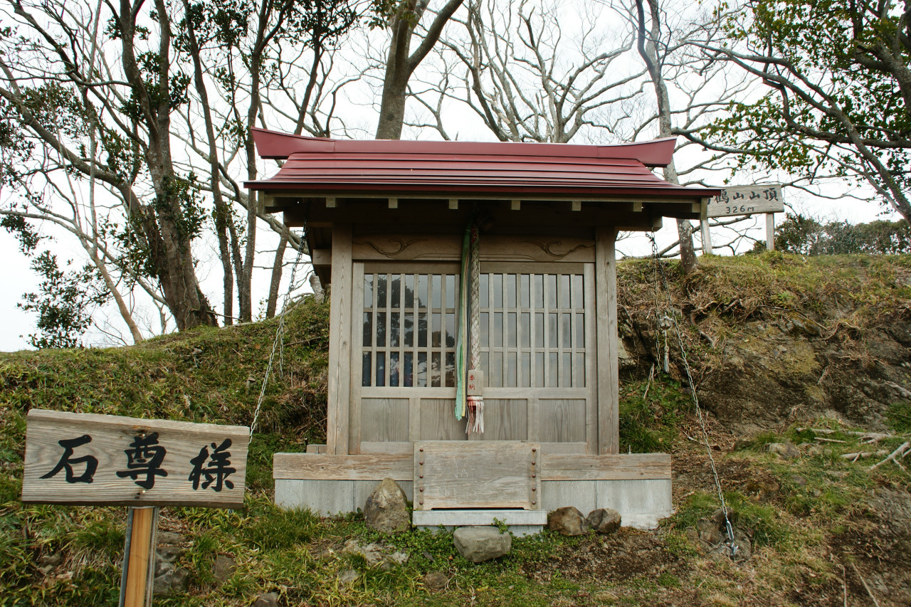 山頂には「石尊様」という小さな祠があり、中には天狗のお面がまつられていた。