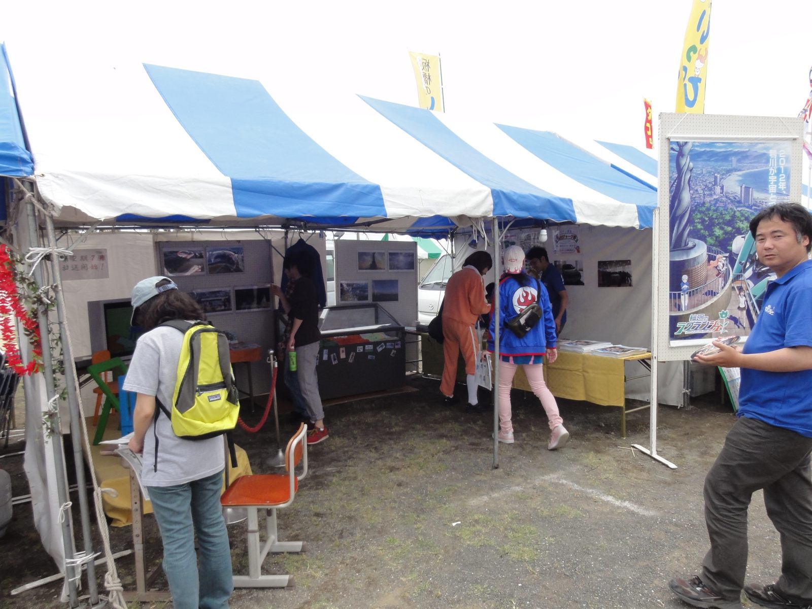 メイン会場に展示用のブース。渚のプロムナード(前原海岸沿いの遊歩道)に販売用のブースを設置。