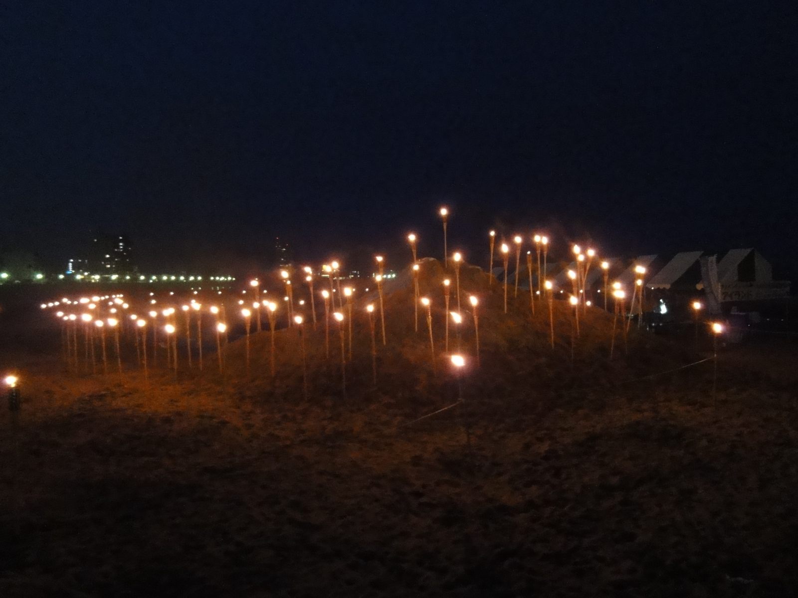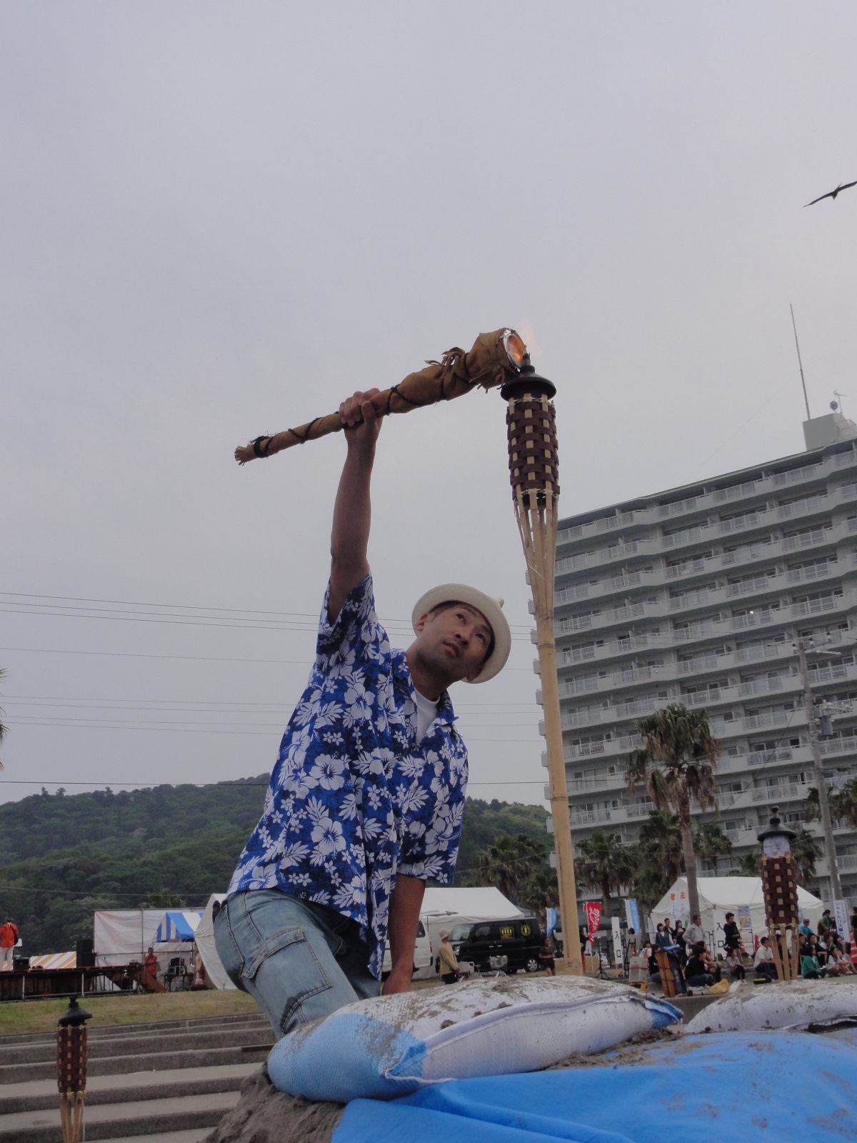 今日はたいまつに火を灯し、夜のビーチを幻想的に演出した。