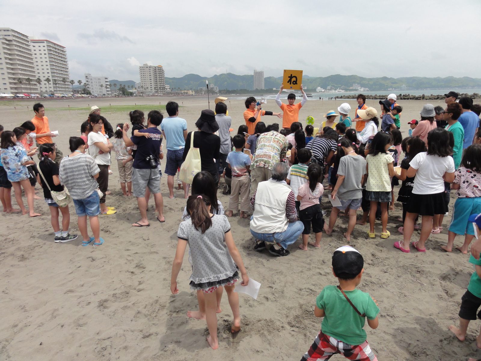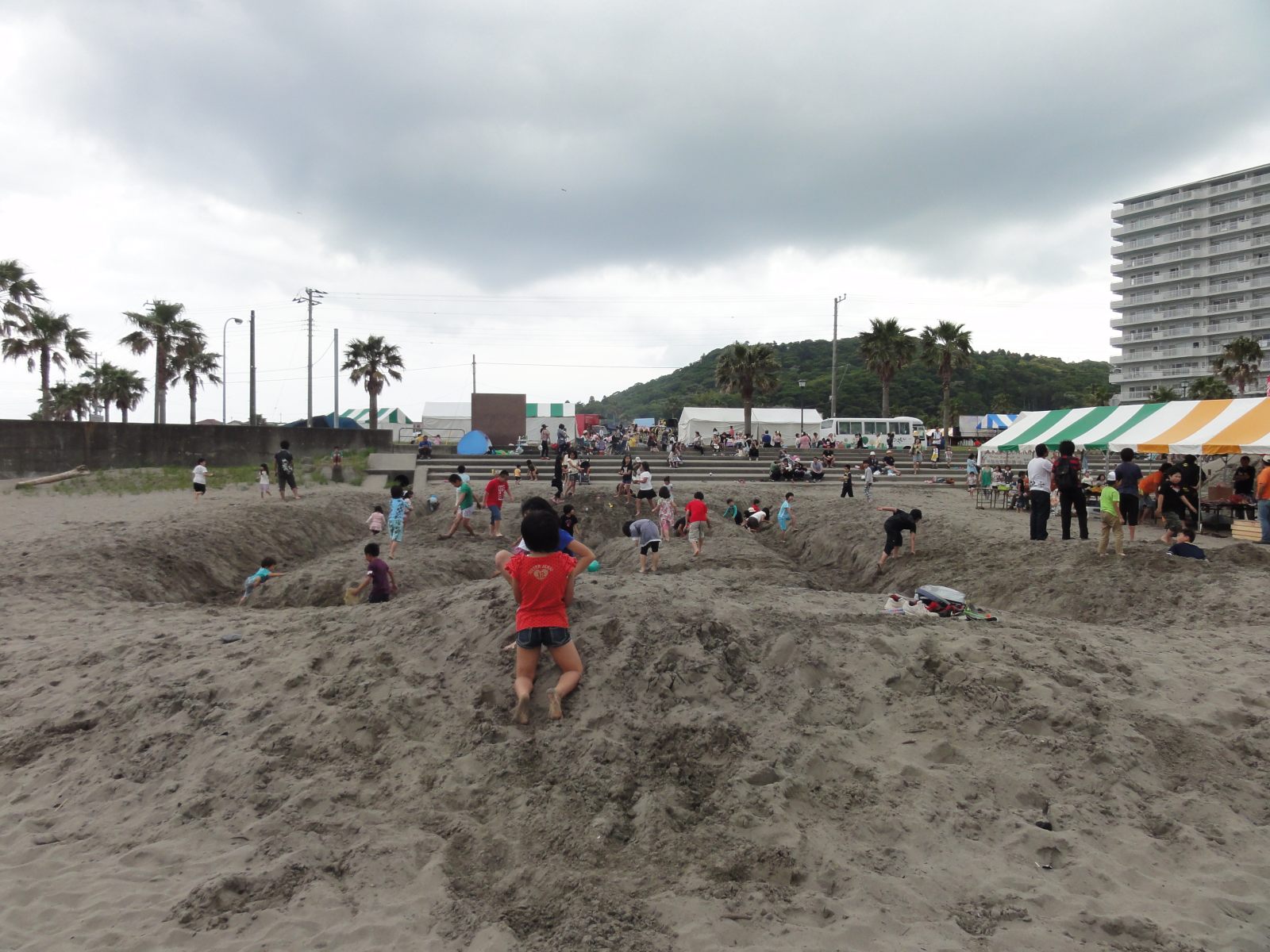 青年会議所は砂山と迷路のサンドパークに加え、2日目にはアドベンチャーアイランドということで、砂浜を使っての宝探しゲームを午前・午後に1回ずつ行った。