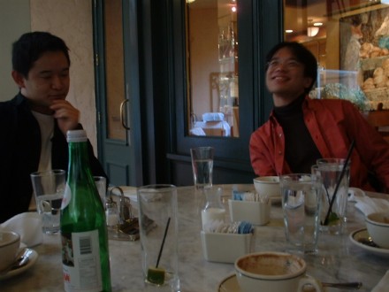 隣の席で食べていた日本人女性とアメリカ人男性のカップルが「学生さんですか〜?」と声をかけてきてくれる。