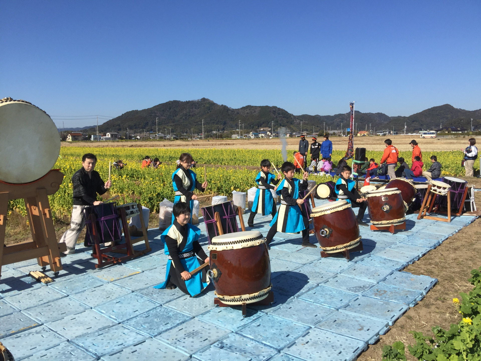 セレモニーが一段落すると、鈴木淳一さん、さらに神明太鼓、笑楽和楽の鈴木門下生がコラボしての迫力の和太鼓ライブ。
