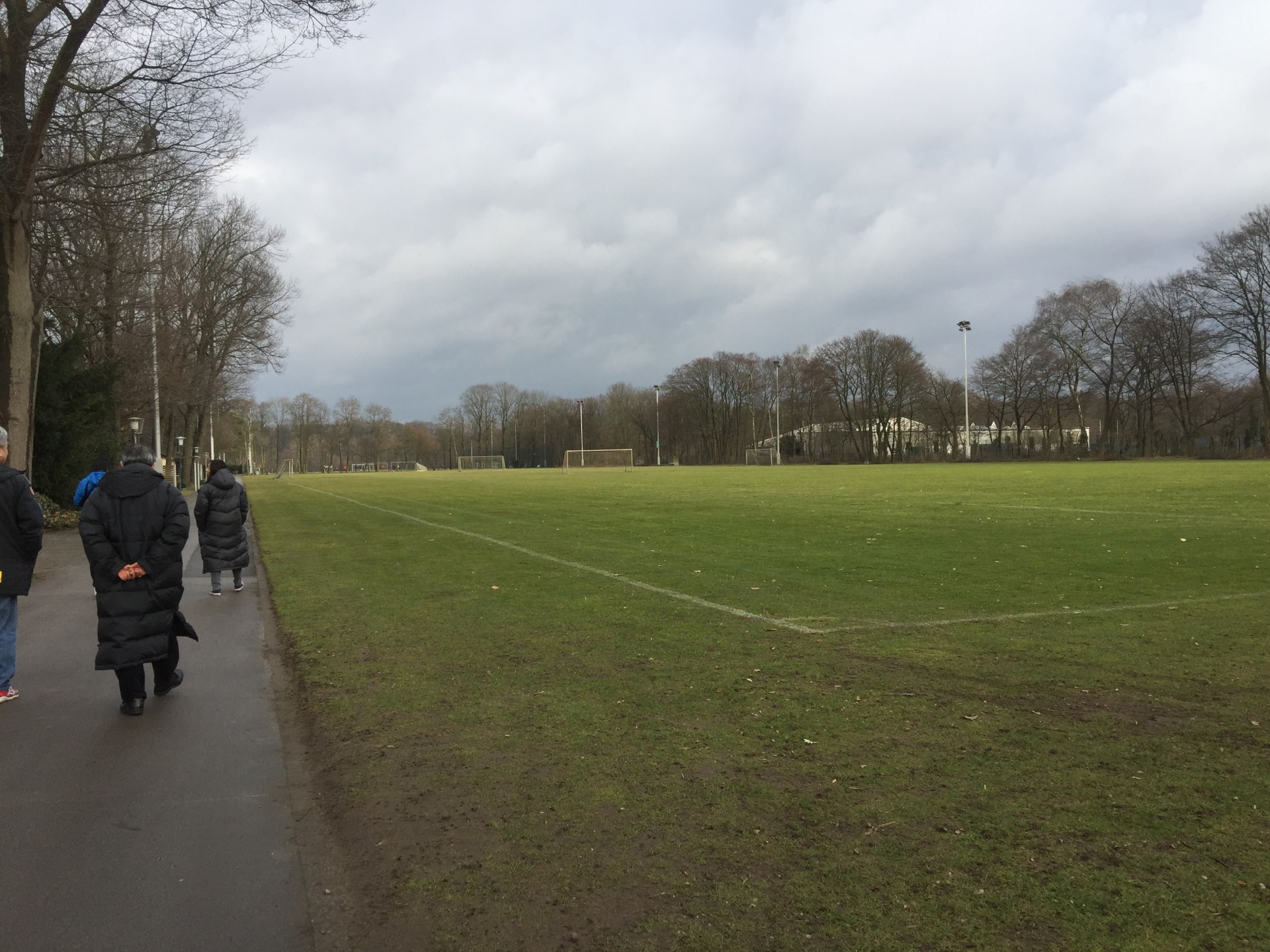 エッセンは自身の固定した練習場はもっておらず、日によりいろいろなピッチで練習しているそうで、今日は隣のピッチでは子どもたちのチームが練習しているなど、アットホームな環境で練習に励んでいた。